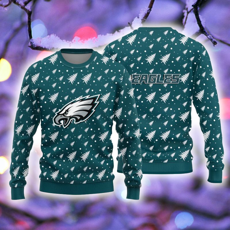 So why wait? Embrace the holiday spirit while proudly displaying your Eagles fandom with this festive and fashionable sweater. Order the Philadelphia Eagles Christmas Pine Tree Patterns Pattern Knitted Ugly Christmas Sweater AOP today and make this holiday season truly unforgettable!