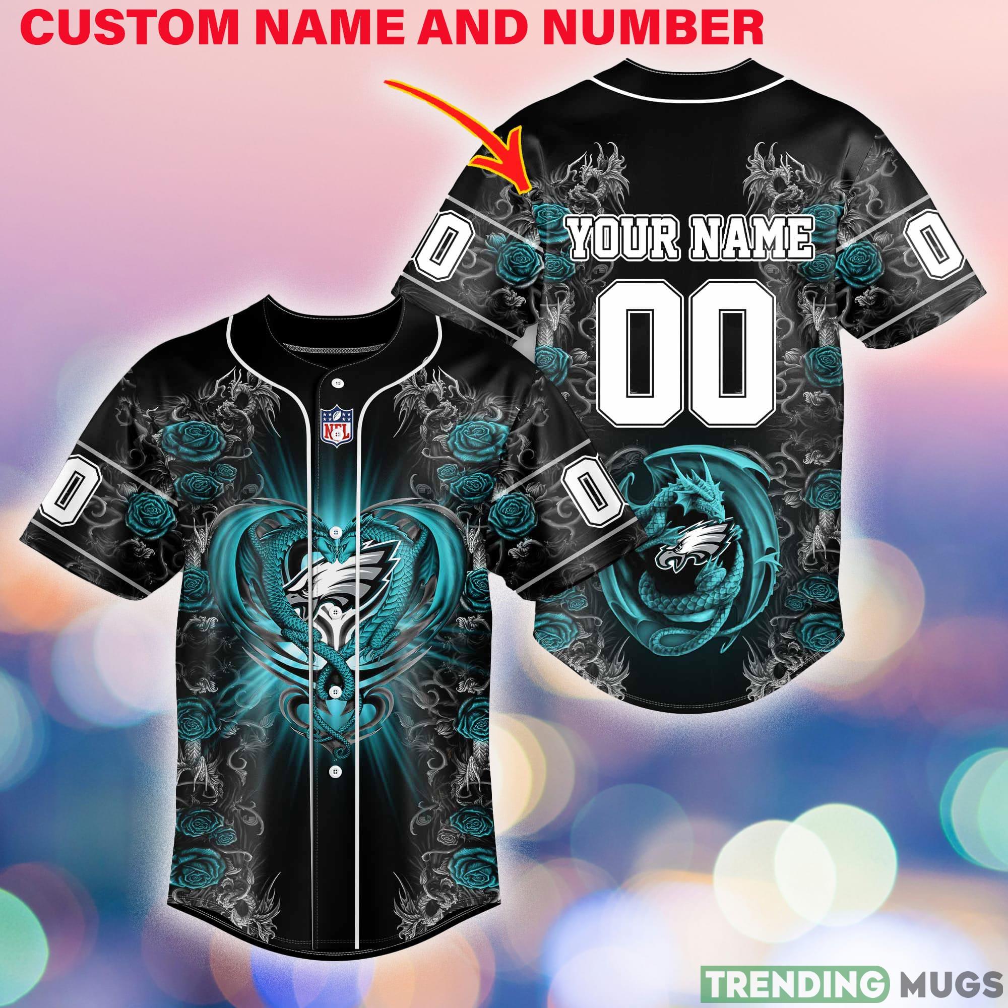 Don’t miss out on this opportunity to show off your Eagles pride in style. Order the Philadelphia Eagles Custom Number And Name NFL Dragon Jersey Shirt now and let your passion roar!