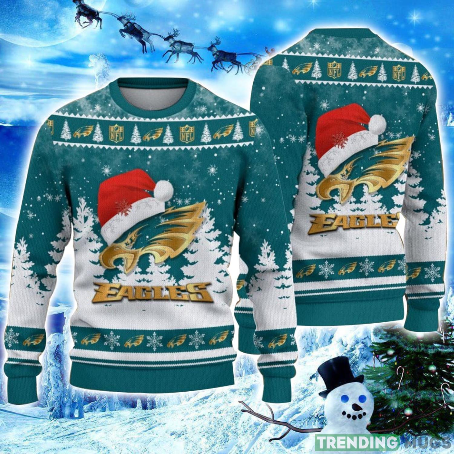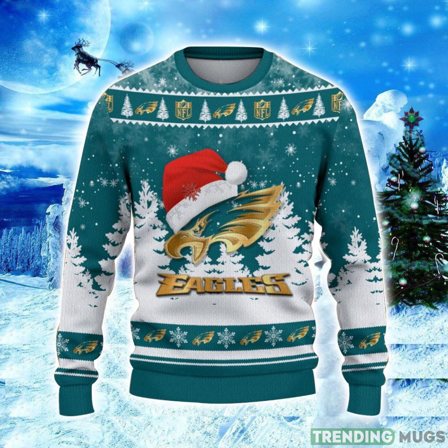 Philadelphia Eagles Logo Wearing Santa Hat Christmas Gift Ugly Christmas Sweater Christmas Gift Ideas Informations: