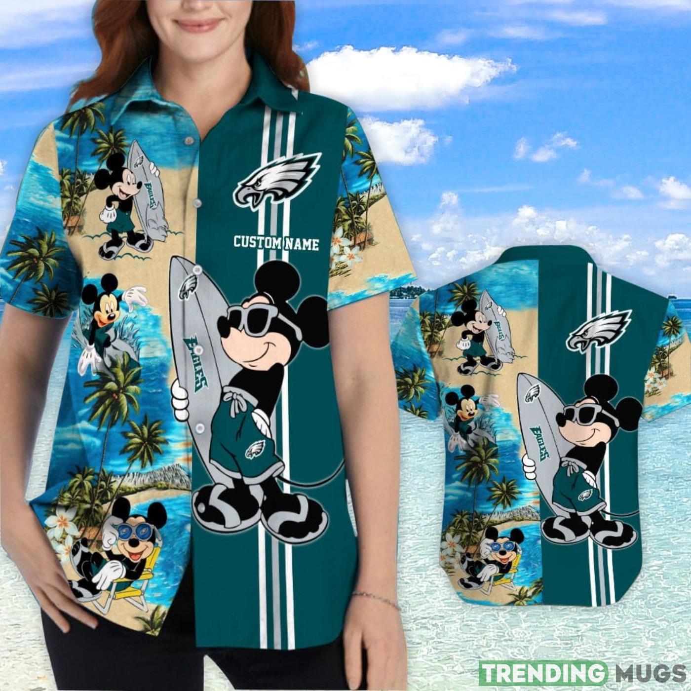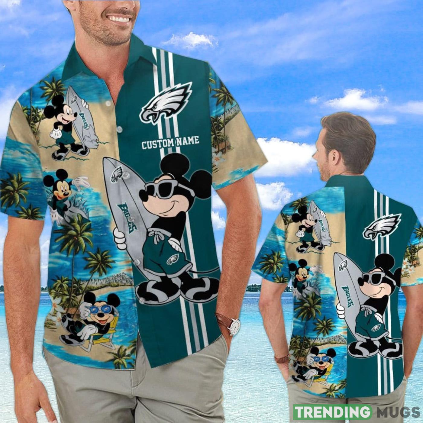 Philadelphia Eagles Mickey Surfing Lover Custom Name Hawaiian Shirt Details: