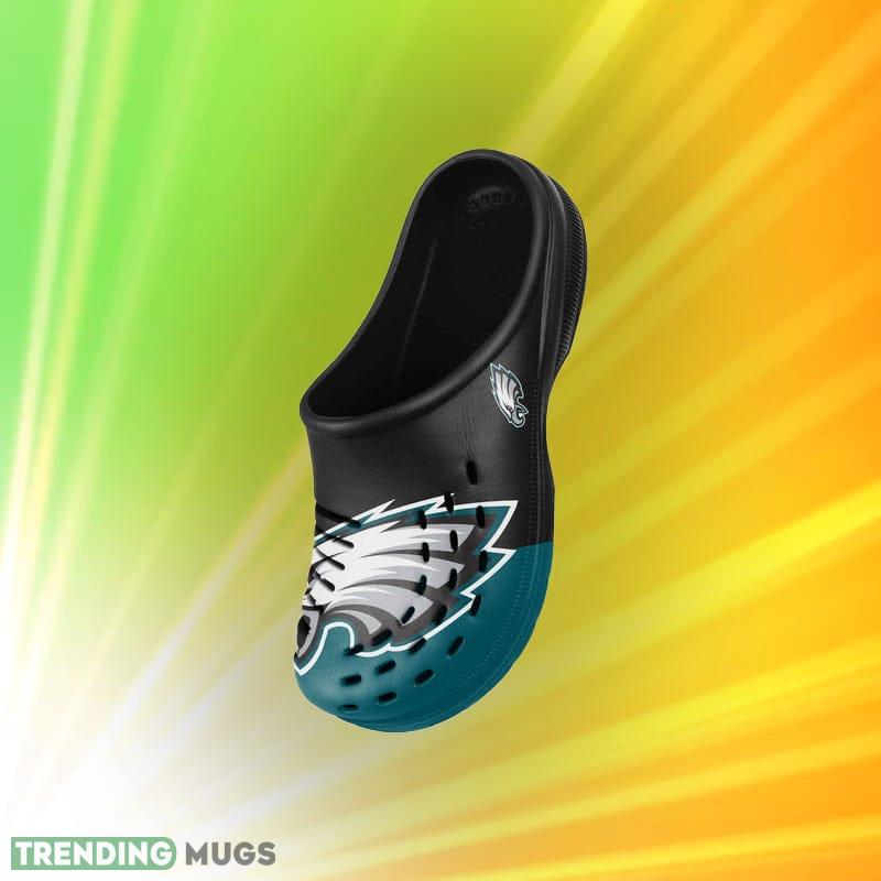 Looking for the perfect footwear to show off your Philadelphia Eagles pride? Check out our Philadelphia Eagles NFL Men and Women Colorblock Big Logo Clog Shoes for Fans! Whether you’re heading to the game or just running errands around town, these stylish and comfortable clogs are the perfect way to show your support for your favorite NFL team.