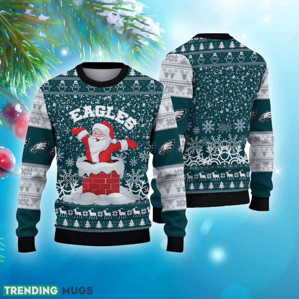 Featuring a playful and unique design, this sweater combines the iconic Santa Claus motif with the unmistakable Philadelphia Eagles logo, creating a fun and distinctive look. The vibrant colors and attention to detail make it a standout piece that will turn heads at any holiday gathering or game day event.