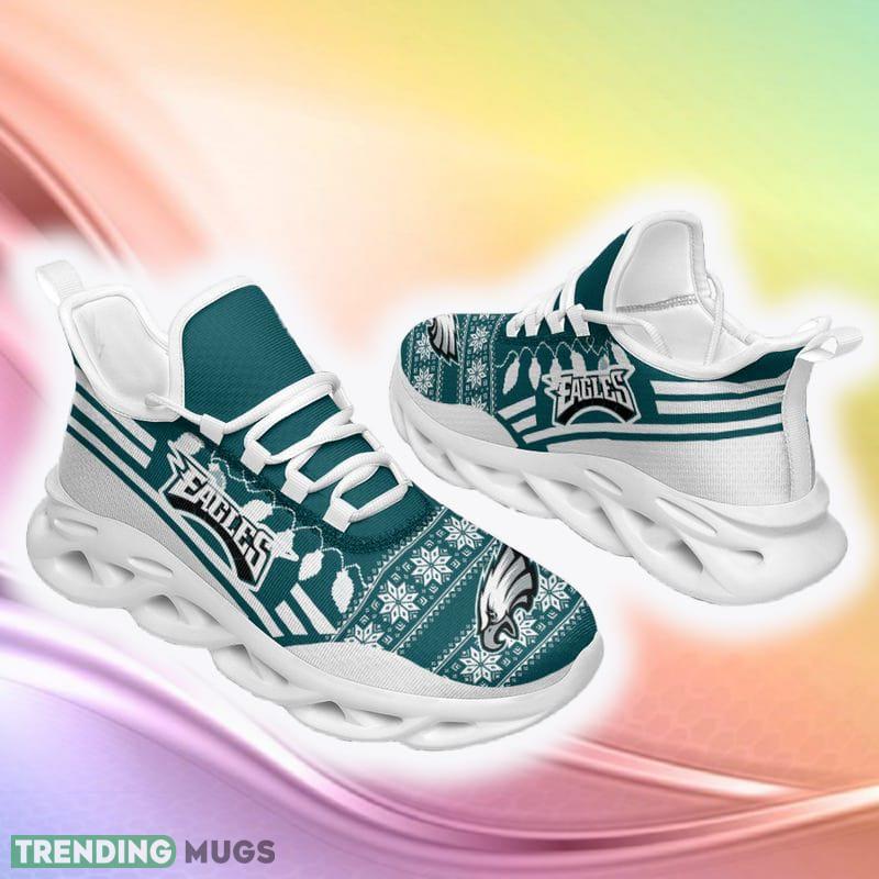 This Philadelphia Eagles Santa Claus Ugly Christmas Snow Flowers Blue Color Sneakers Max Soul Shoes For Fans Gift is a breathable, lightweight, and comfortable casual outdoor shoe that has a unique design. It is made of a mesh fabric which makes it sweat absorbent and breathable, while the rubber bottom ensures traction, comfort, and durability. It is available in two colors: black or white sole. There are two styles of shoelace holes so you can choose your preference.