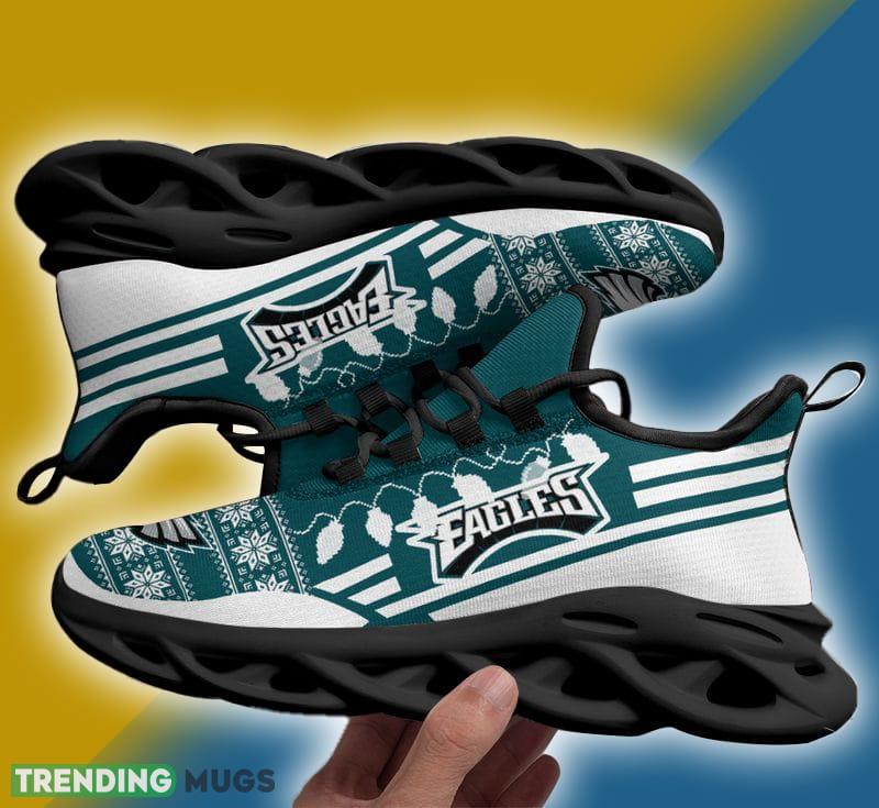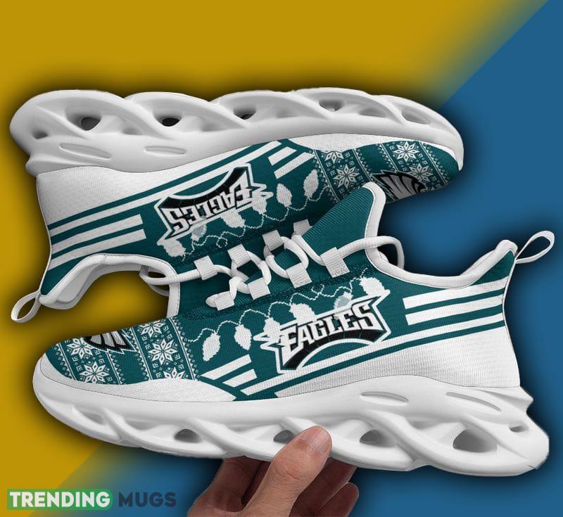This Philadelphia Eagles X-max Santa Claus Max Soul Shoes Mark Christmas Sneakers is a breathable, lightweight, and comfortable casual outdoor shoe that has a unique design. It is made of a mesh fabric which makes it sweat absorbent and breathable, while the rubber bottom ensures traction, comfort, and durability. It is available in two colors: black or white sole. There are two styles of shoelace holes so you can choose your preference.