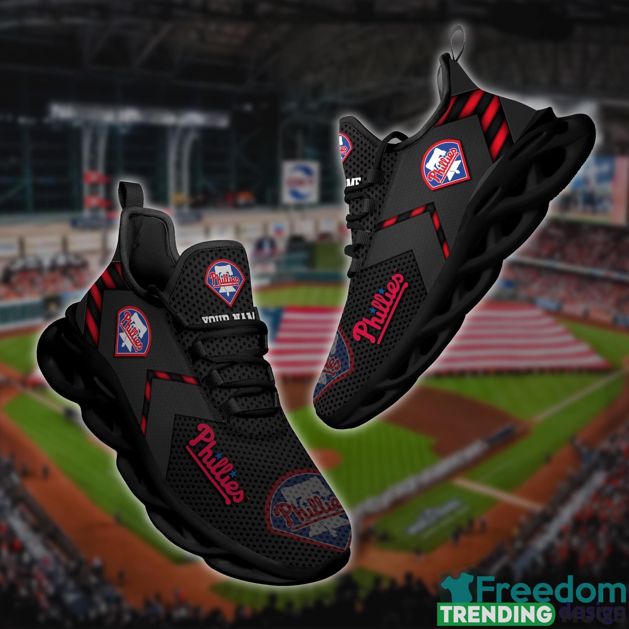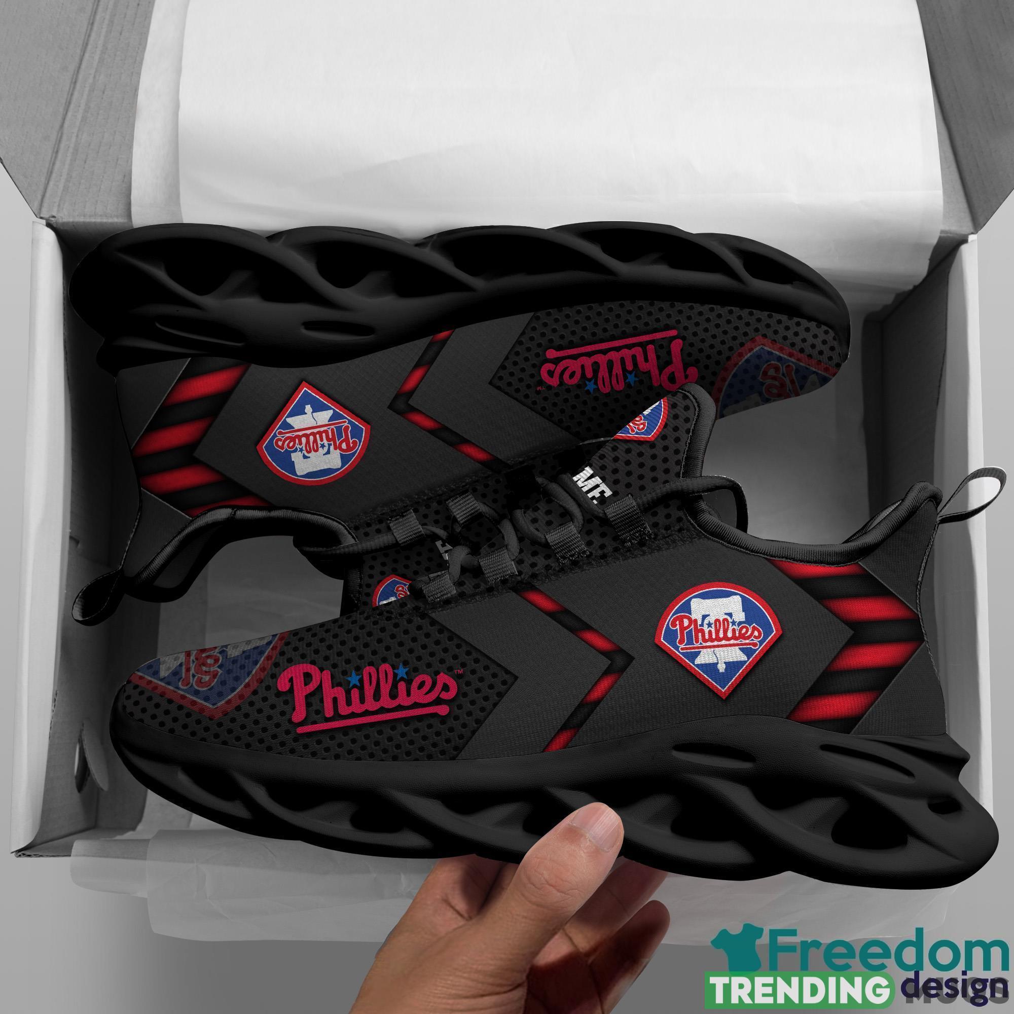 Step up your game day style with the Philadelphia Phillies MLB Max Soul Shoes! These personalized chunky sneakers are the ultimate must-have for any die-hard Phillies fan. Crafted with meticulous attention to detail, these shoes feature the iconic Phillies logo, proudly showcasing your team loyalty.