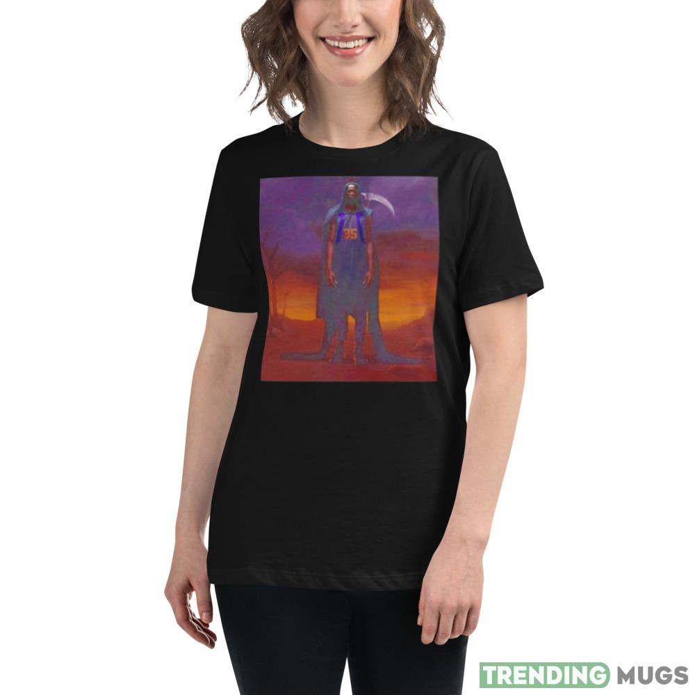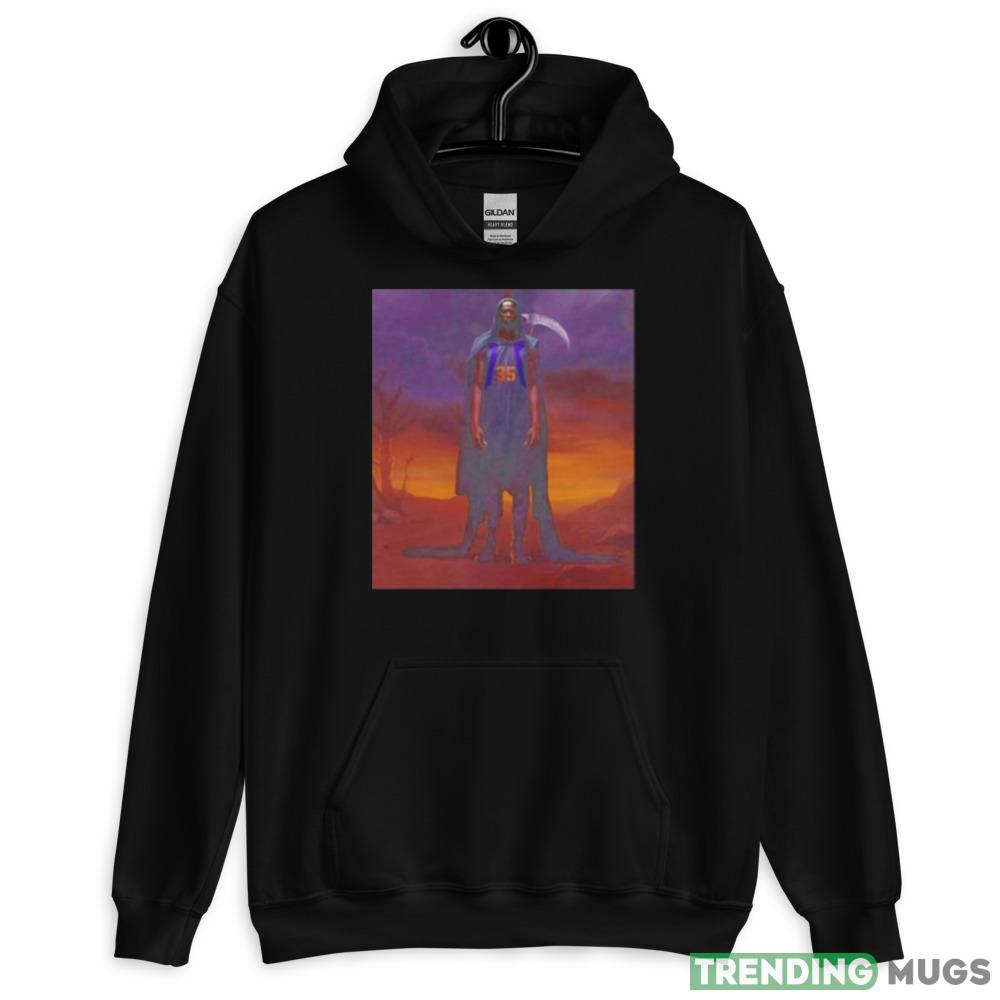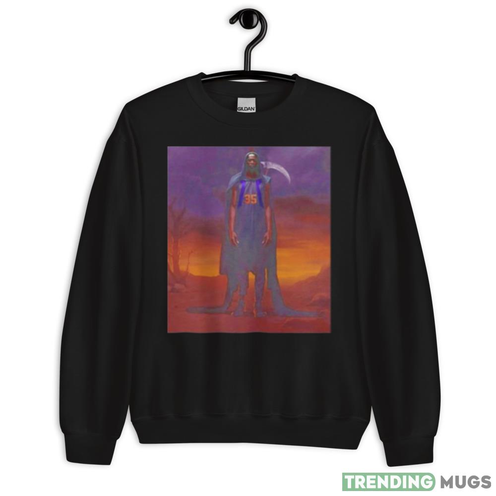 Crafted with high-quality materials, this shirt is both comfortable and durable. It features a sleek black design with the iconic Suns logo prominently displayed on the front. The number “35” is also featured, paying homage to the team’s history and legacy.