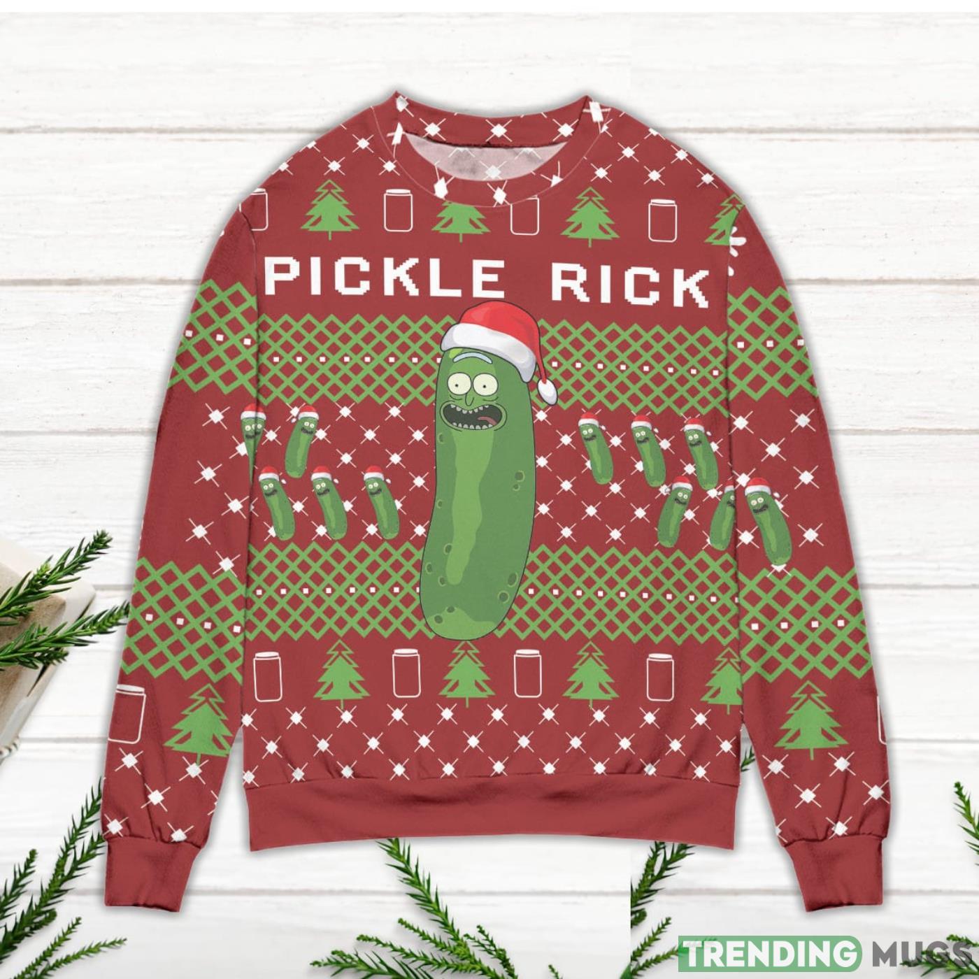 Are you feeling festive this holiday season? Why not channel your inner Pickle Rick with this officially licensed Christmas sweater! This ugly Christmas sweater is perfect for any fan of the hit show, and will help keep you warm on those cold winter nights. Made from a thick, plush fabric, this sweater is sure to keep you cozy all season long. Add this officially licensed Christmas sweater to your wardrobe and prepare for hours of laughs from your friends and family.