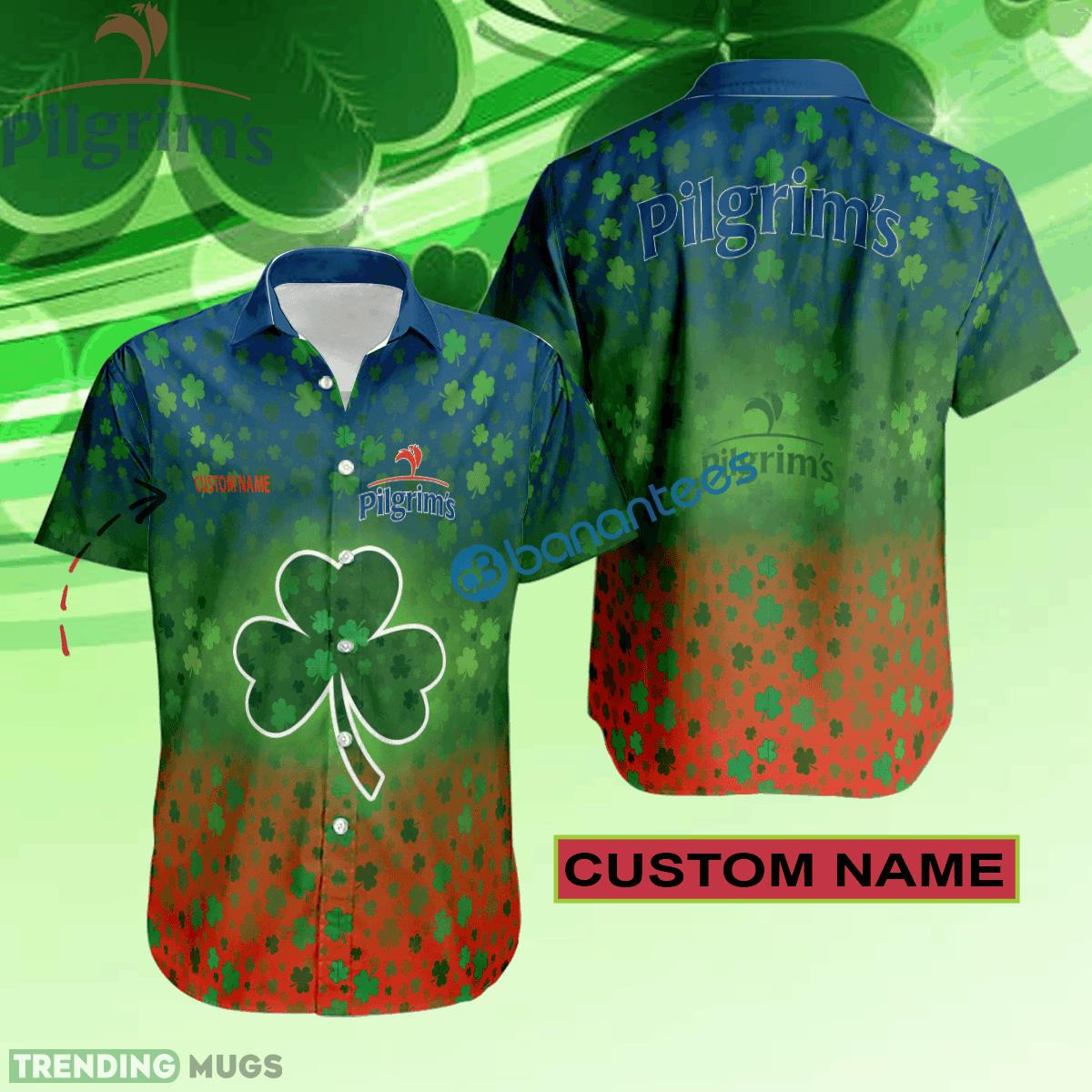 Pilgrim’s Hawaiian Shirt Logo Brand Design Patrick Day Custom Name Details: