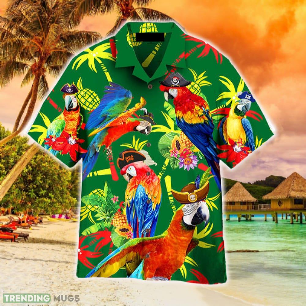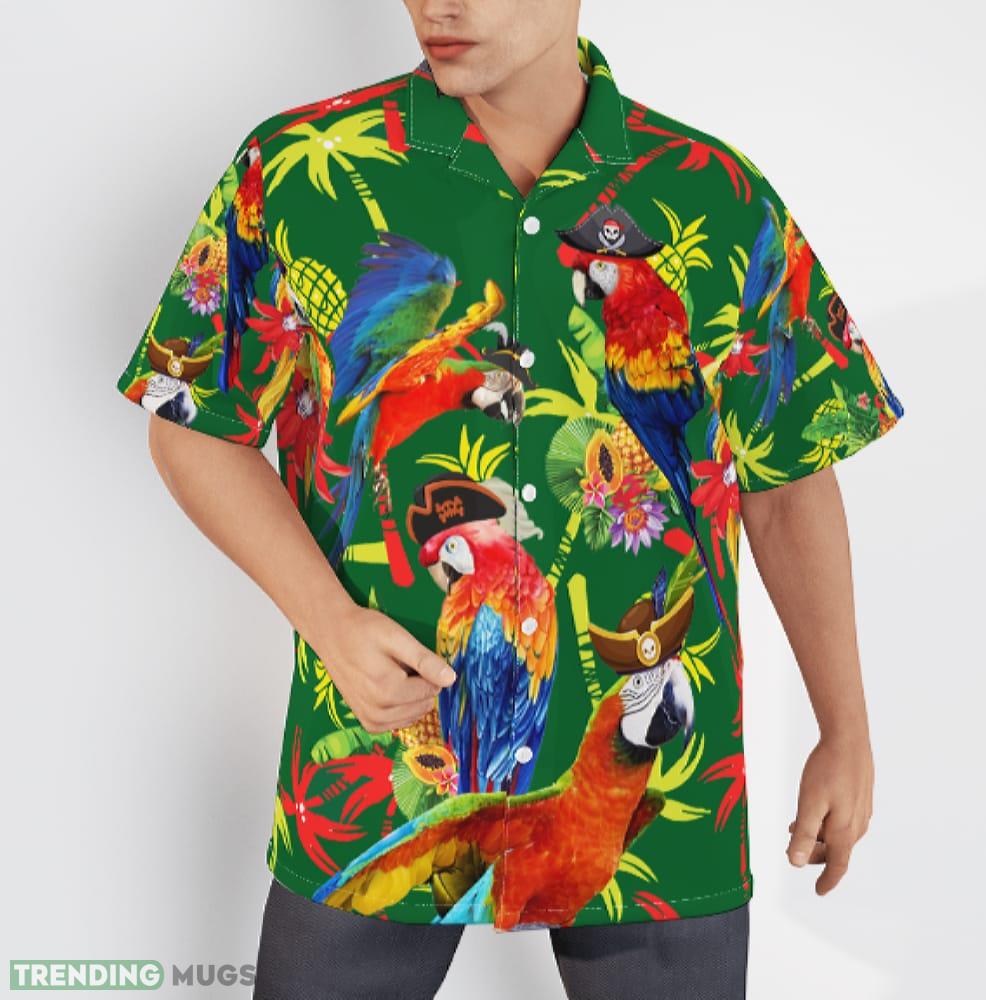 Pirate Parrots Tropical Green Hawaiian Shirt Summer For Men And Women Details: