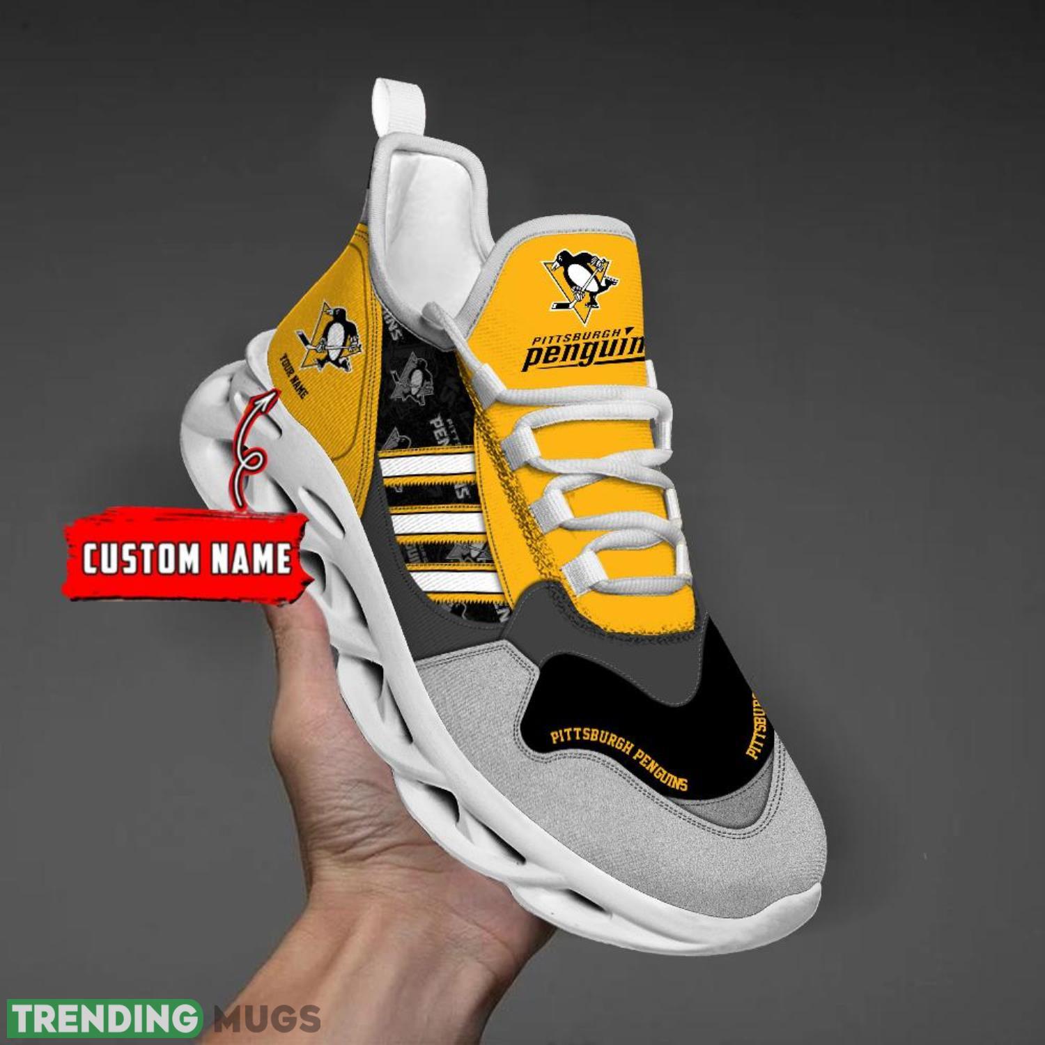 This Pittsburgh Penguins Snaekers Clunky Max Soul Shoes Men Women Shoes is a breathable, lightweight, and comfortable casual outdoor shoe that has a unique design. It is made of a mesh fabric which makes it sweat absorbent and breathable, while the rubber bottom ensures traction, comfort, and durability. It is available in two colors: black or white sole. There are two styles of shoelace holes so you can choose your preference.