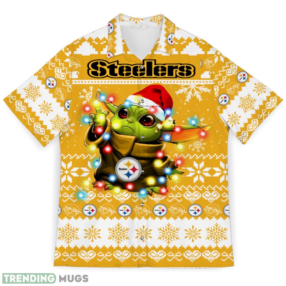 Whether you’re attending a holiday party, cheering on the Steelers at the game, or simply spreading some festive cheer, this Pittsburgh Steelers Baby Yoda Star Wars Sports Football Ugly Christmas Sweater Pattern 3D Hawaiian Shirt is the perfect choice. It’s a unique Christmas gift that any Pittsburgh Steelers fan or Star Wars enthusiast would be thrilled to receive.