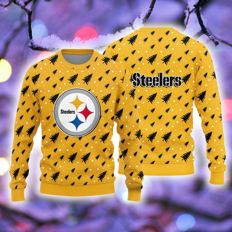Pittsburgh Steelers Christmas Pine Tree Patterns Pattern Knitted Ugly Christmas Sweater AOP Gift For Men And Women Informations: