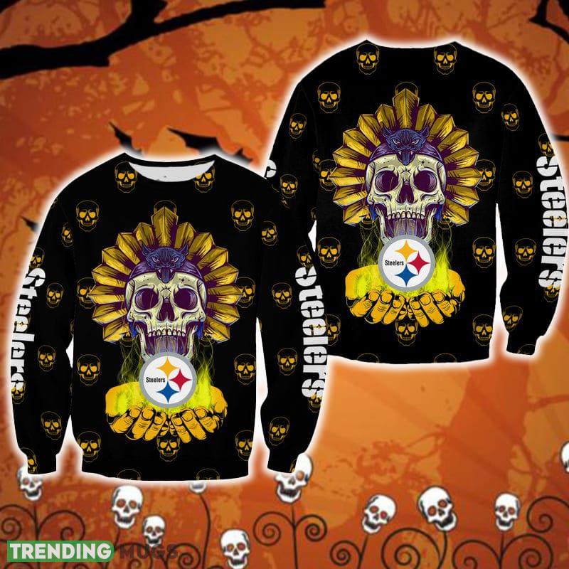 Pittsburgh Steelers Halloween Skull Gathering Halloween Ugly Sweater For Men And Women Gift Christmas 3D Sweater