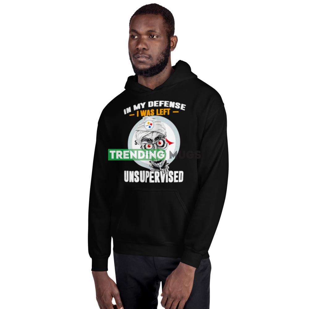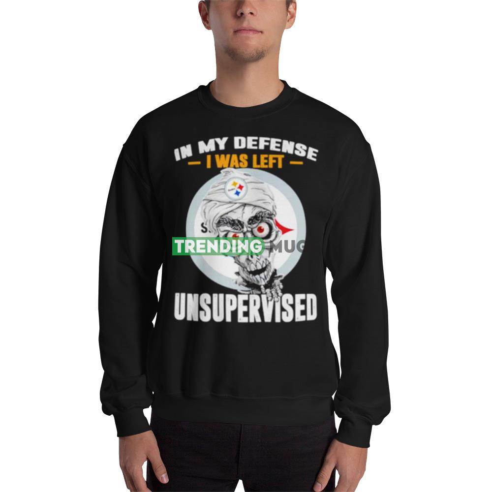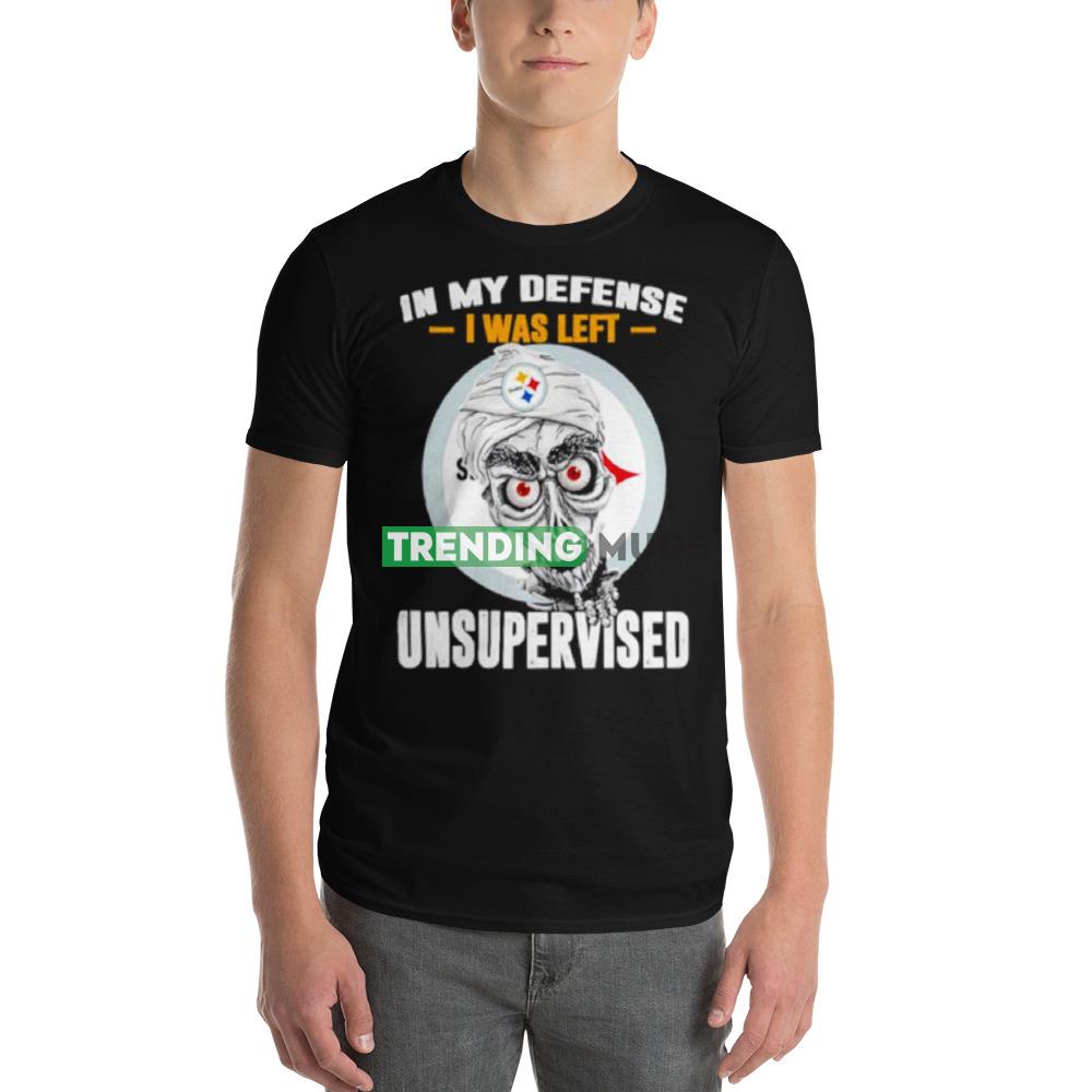 Featuring the iconic Pittsburgh Steelers logo on the front, this shirt is a great way to show your support for your favorite team. The words “In My Defense I Was Left Unsupervised” are printed in bold letters on the back of the shirt, making it clear to everyone around you that you are a true Steelers fan.