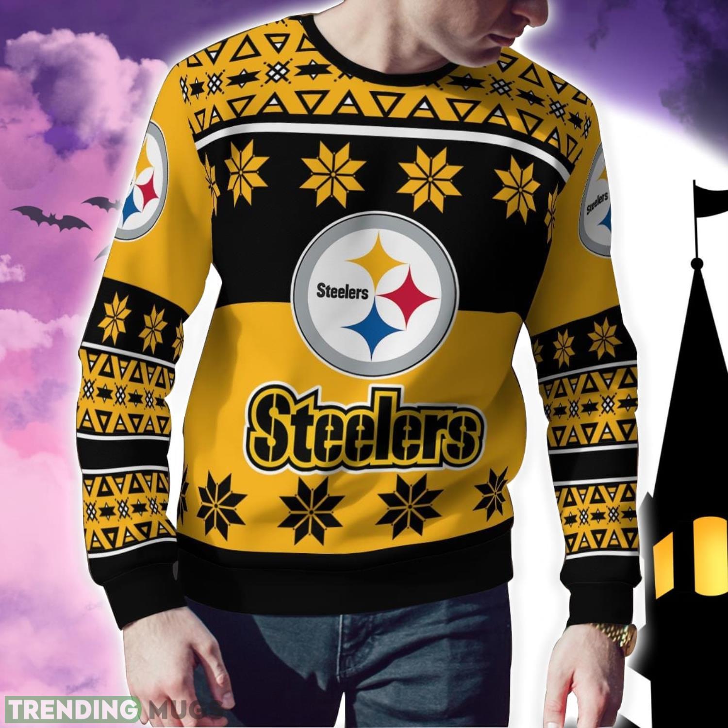 Featuring a bold Pittsburgh Steelers logo prominently displayed on the front, this sweater instantly showcases your unwavering team loyalty. The intricate snowflake pattern adds a whimsical touch, making it a standout piece at any Christmas party or holiday gathering.