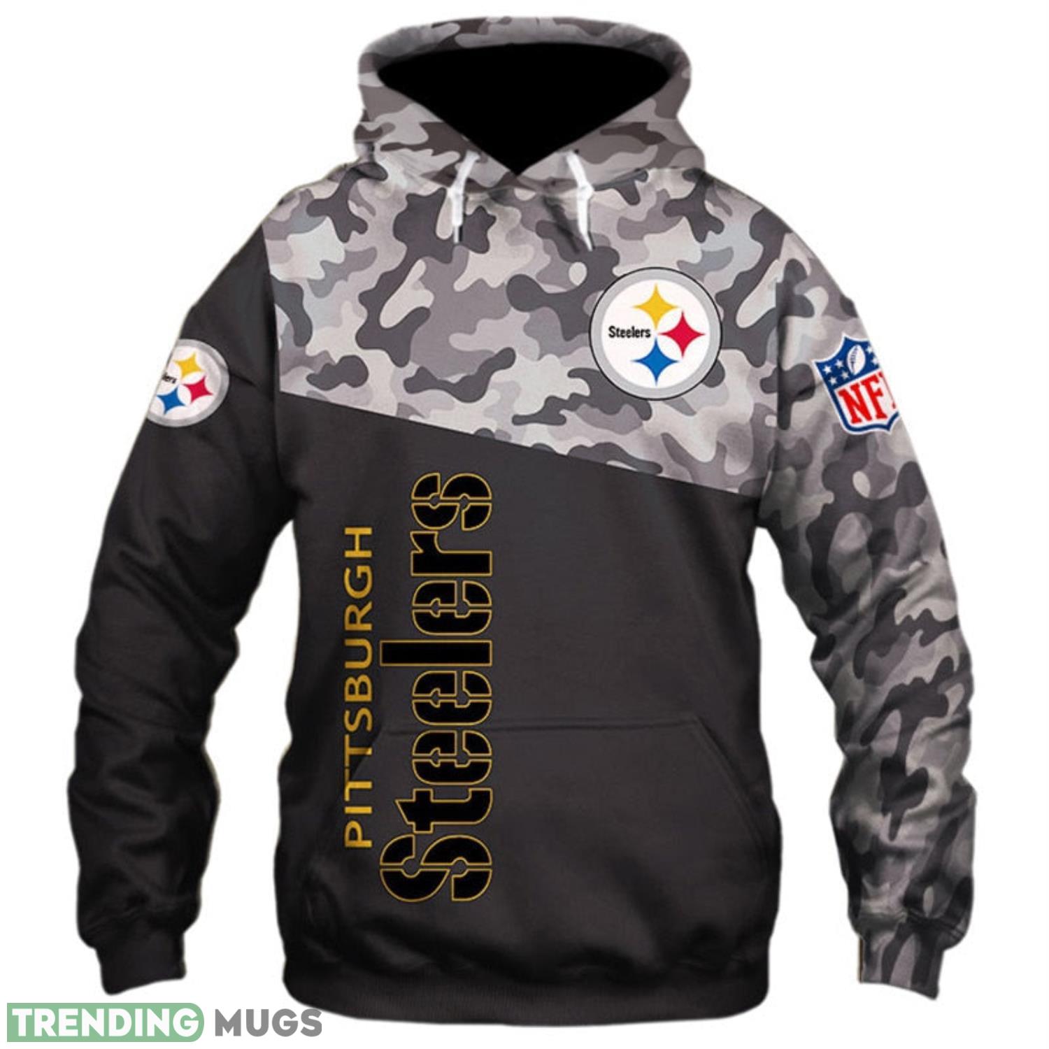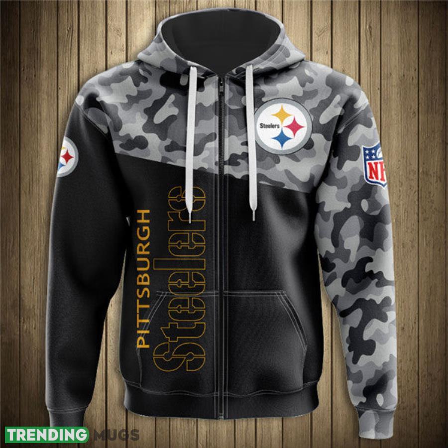 • Pittsburgh Steelers Military Camo Pattern Printed 3D Hoodie Zip Hoodie 3D All Over Print, 3D Hoodies