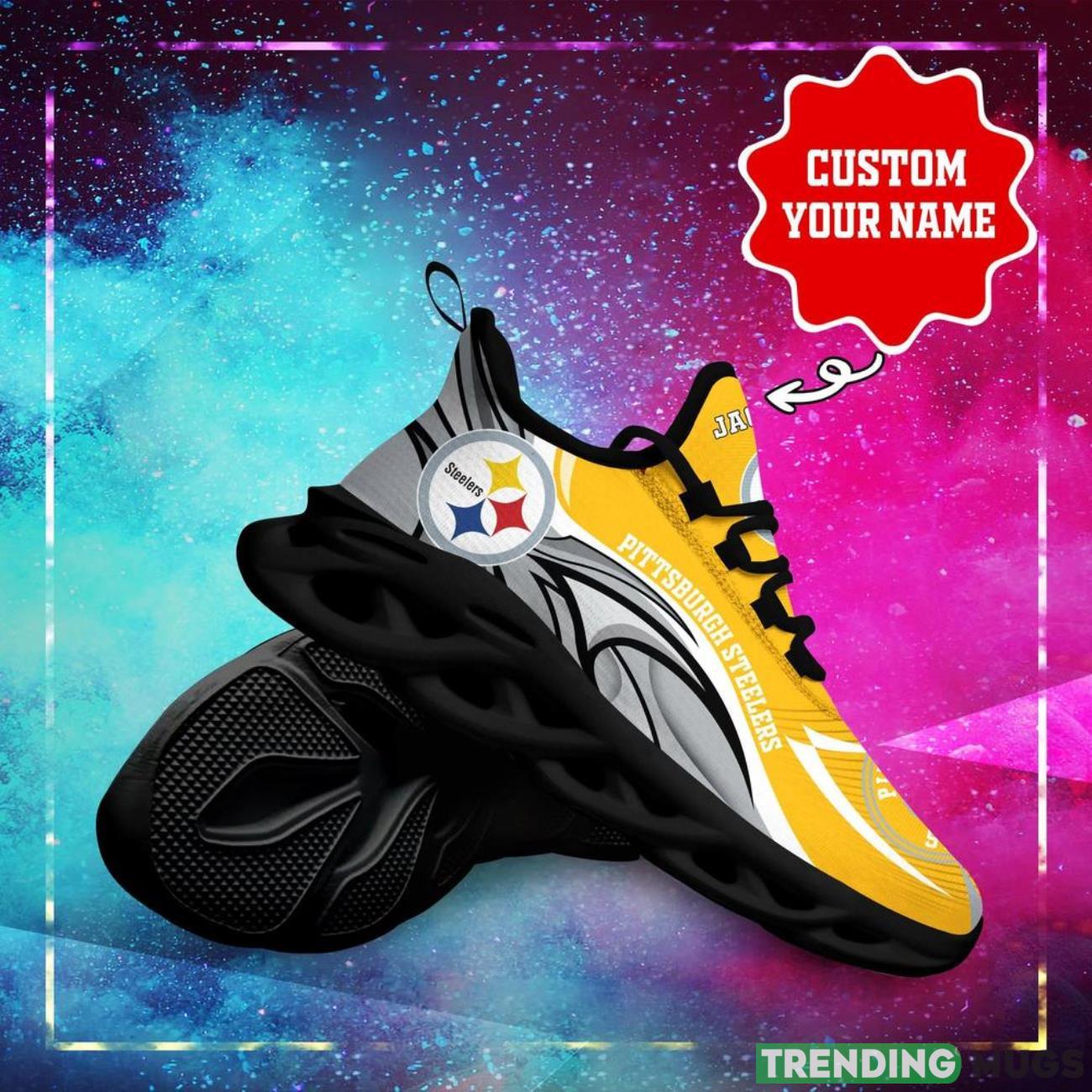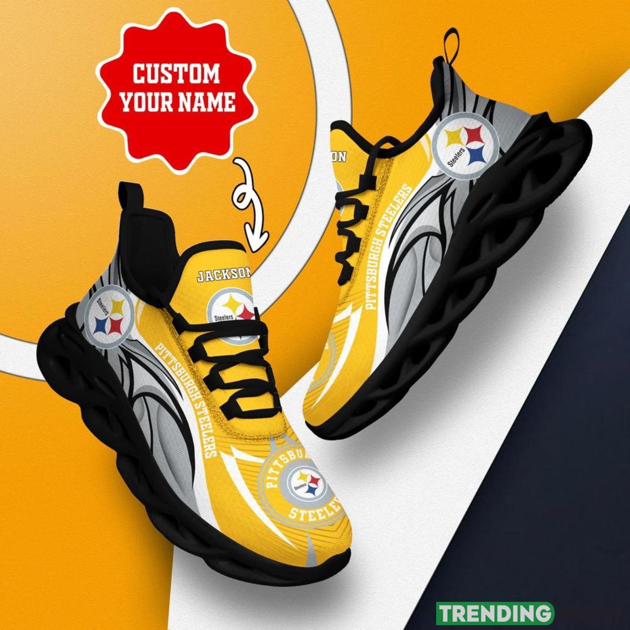 The Pittsburgh Steelers NFL Max Soul Shoes are a must-have for die-hard NFL fans! Designed with ultimate style and comfort in mind, these custom name shoes are the perfect way to show off your love for the Pittsburgh Steelers and the National Football League.