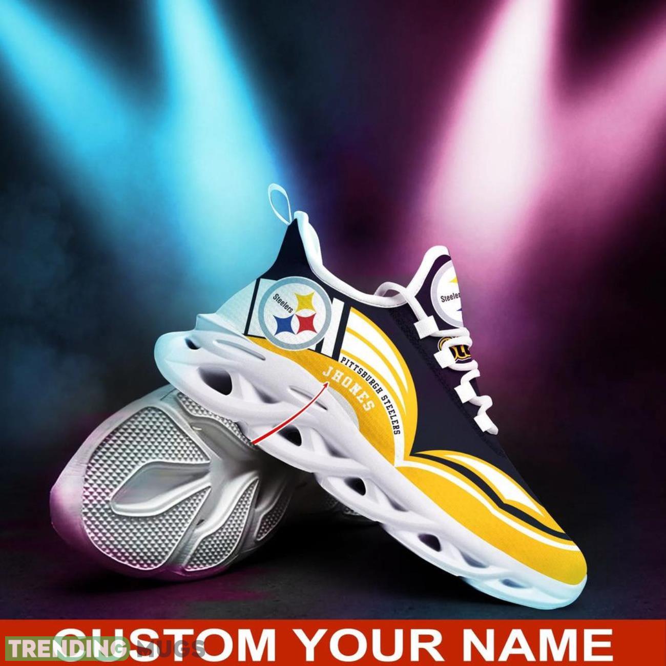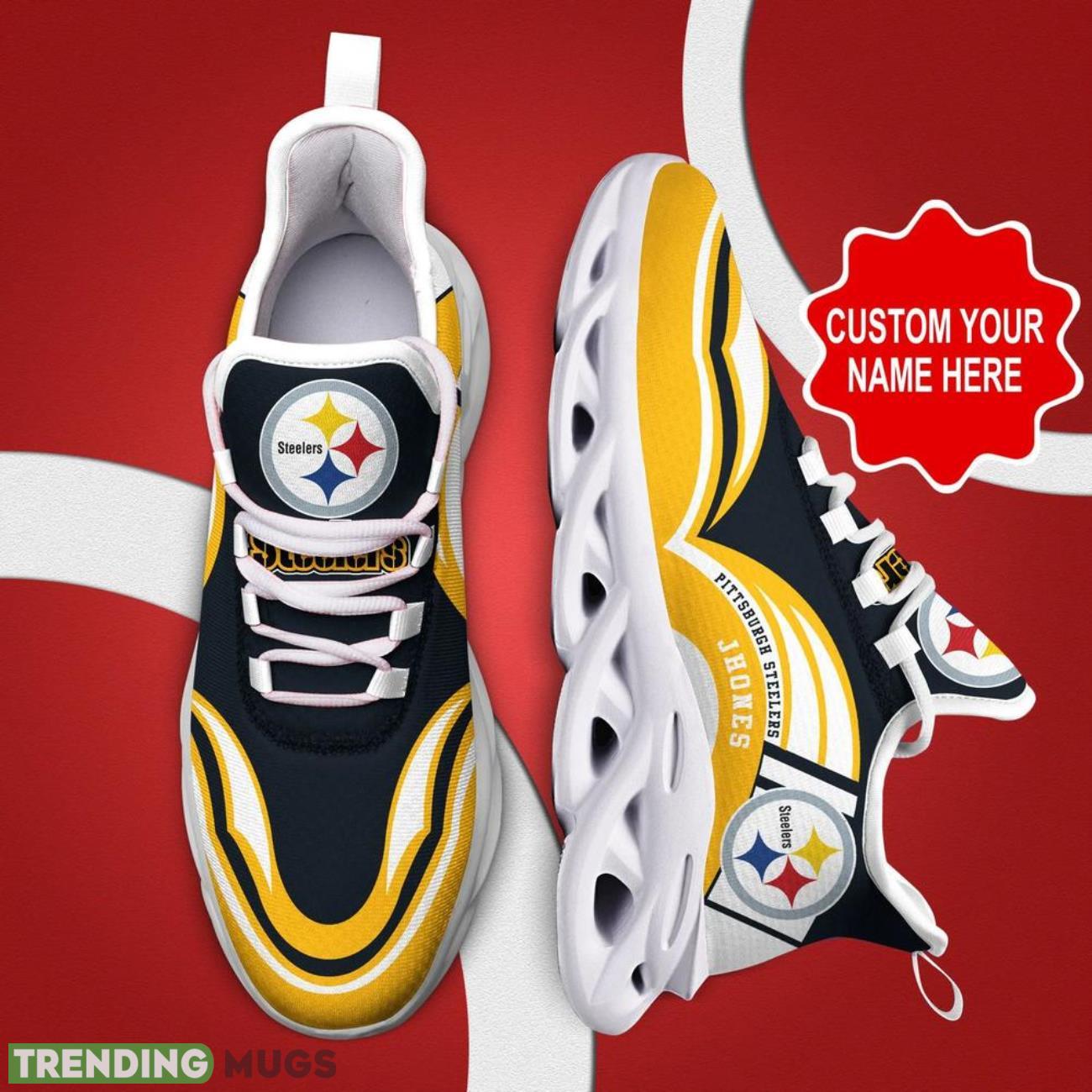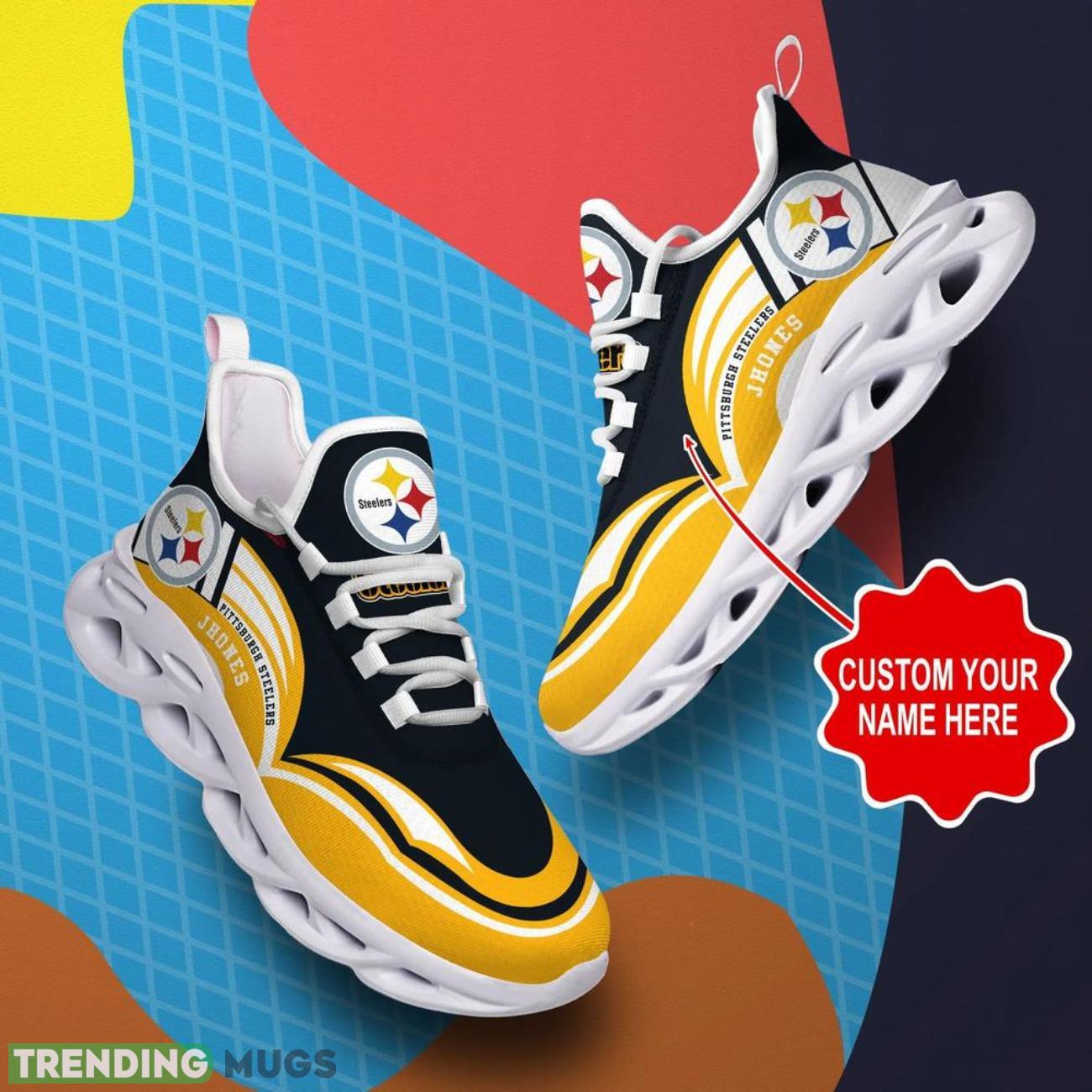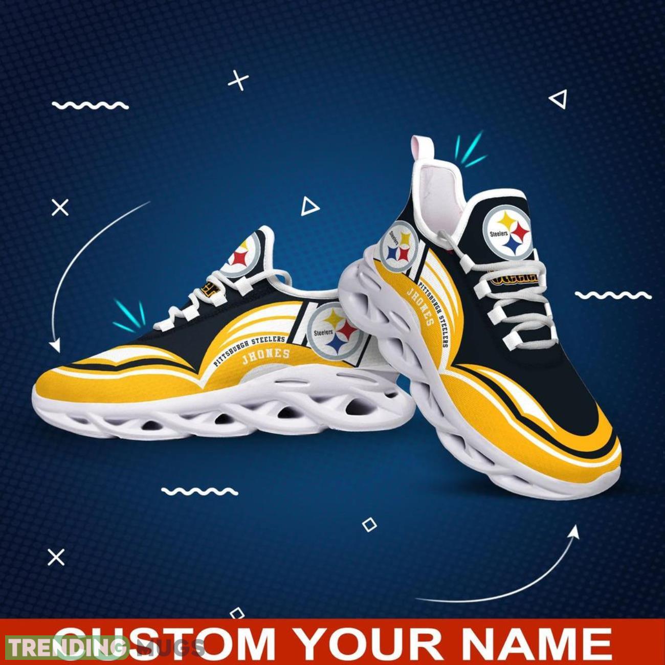 Show off your Pittsburgh Steelers pride with these NFL Max Soul Shoes Custom Name Sneakers! Perfect for any football fan, these hot trending shoes are the ultimate gift for the football lover in your life. Personalize them with your own name or the name of your favorite player for a unique touch. Don’t miss out on these stylish and comfortable sneakers that will have you standing out in the crowd on game day. Get your hands on a pair today and step up your game day style!