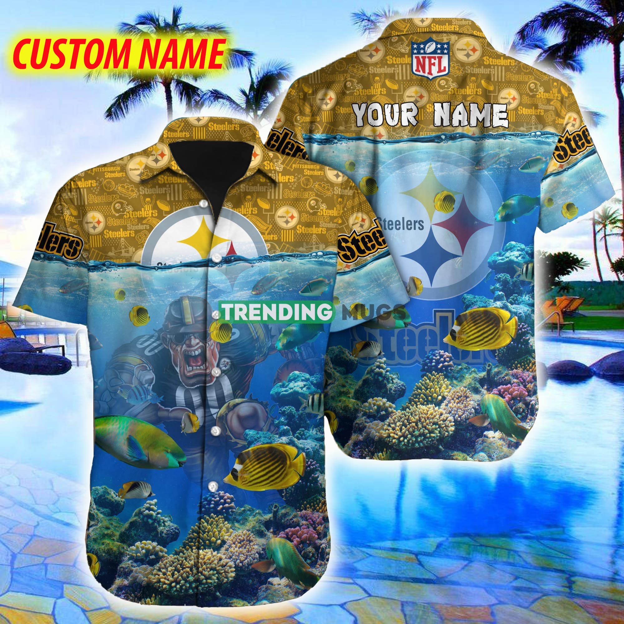 Pittsburgh Steelers NFL Ocean Beach Coral Fish 3D Hawaiian Shirt For Fans Gift Custom Name – Pittsburgh Steelers NFL Ocean Beach Coral Fish 3D Hawaiian Shirt For Fans Gift Custom Name
