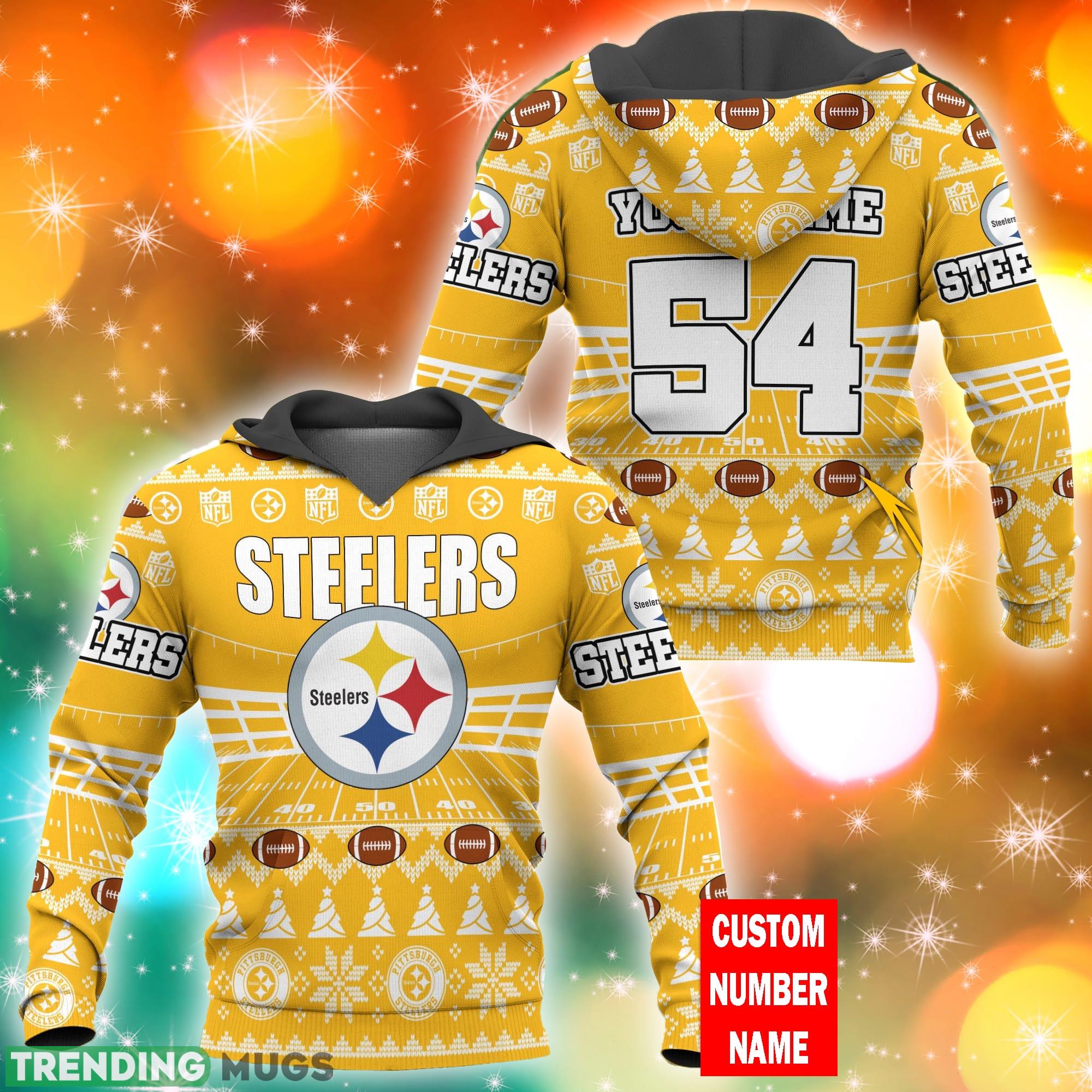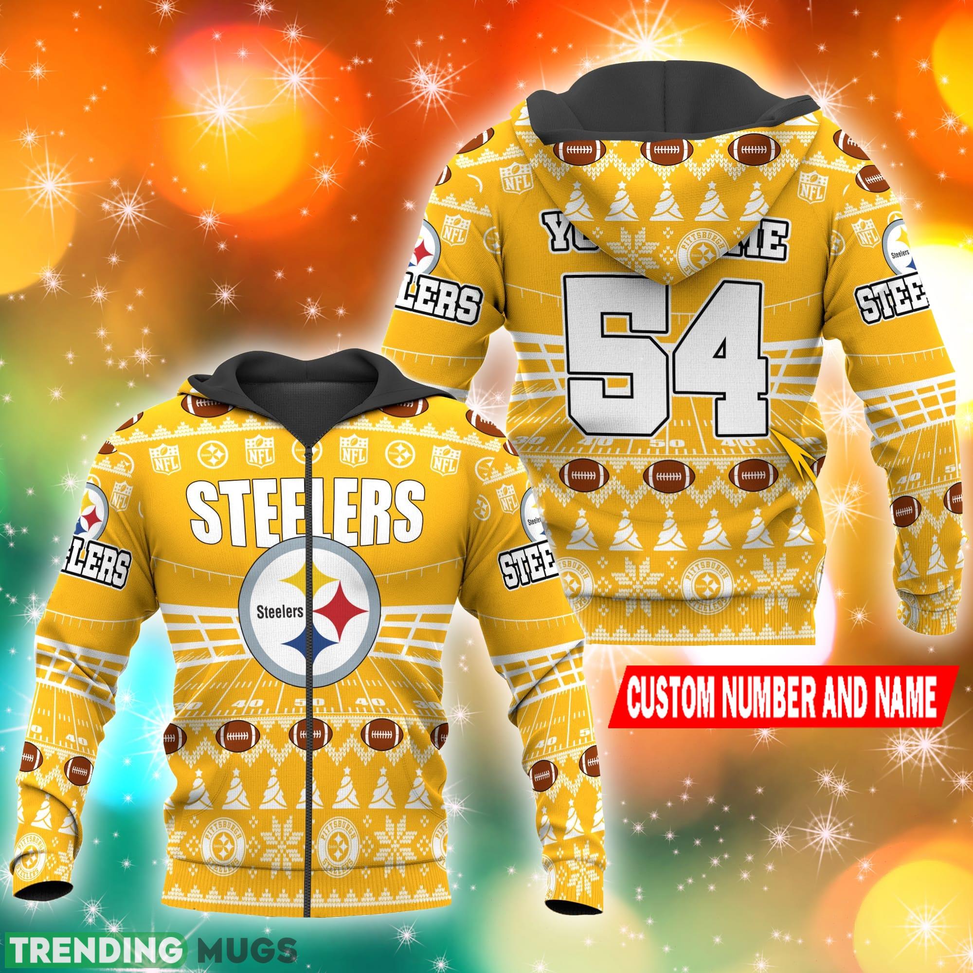 No matter if you’re heading to the stadium or watching the game from the comfort of your own home, our Pittsburgh Steelers NFL Ugly Stadiums Christmas 3D Zip Hoodie Custom Number And Name is a must-have for any true fan. Don’t miss out on the opportunity to showcase your team spirit and be the envy of fellow Steelers supporters.