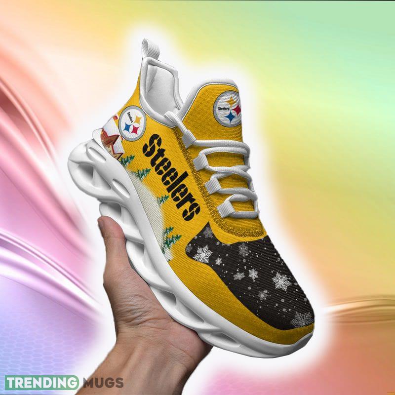 Pittsburgh Steelers Print Stylish Ugly Christmas Snow Flowers Yellow Color Sneakers Max Soul Shoes For Fans Gift Max Soul