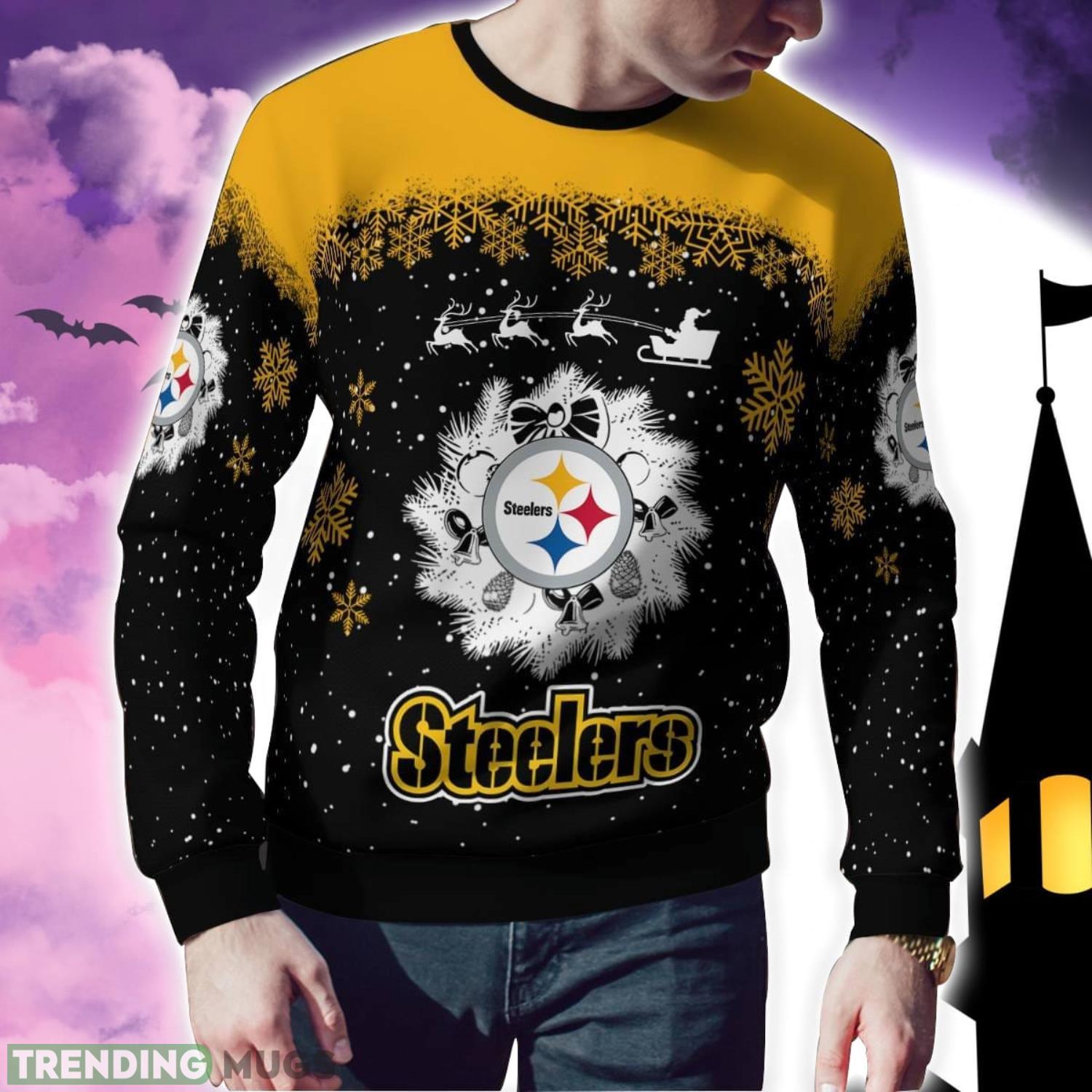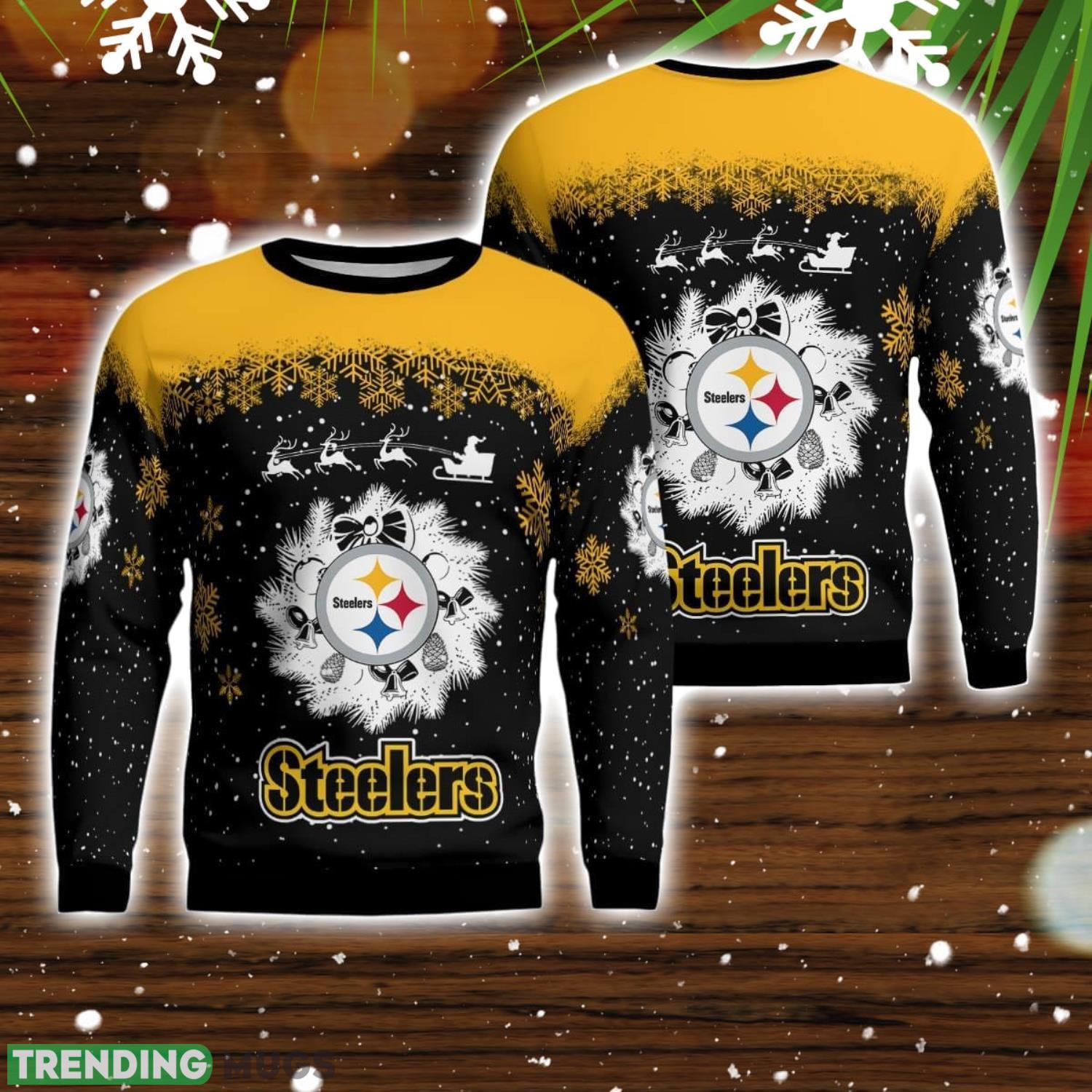 Pittsburgh Steelers Santa sleigh driving reindeer Pattern Ugly Christmas Sweater 3D Sweater