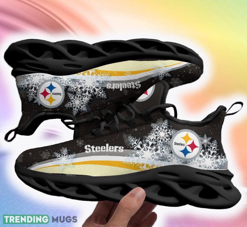 Pittsburgh Steelers Snow Ugly Christmas Snow Flowers Yellow Color Sneakers Max Soul Shoes For Fans Gift information: