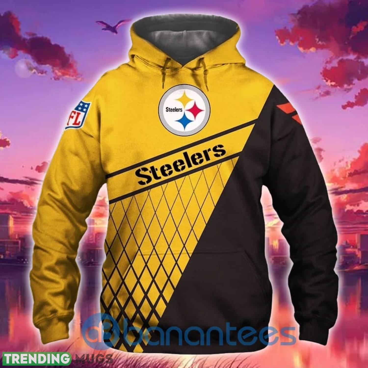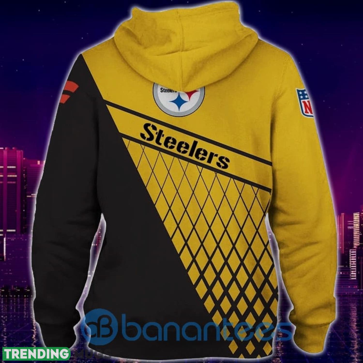 Looking for a way to show your Steelers pride in a subtle, yet stylish way? Then check out this Pittsburgh Steelers Zip Hoodie All Over Printed! It features an all over print of the Steelers logo in team colors, so you can show your support for your favorite team while looking good. The hoodie also has a front zip closure, two front pockets, and a drawstring hood, so you can stay warm and comfortable while you show your team pride.