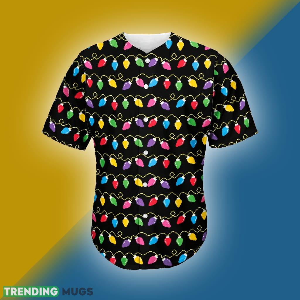 Pixel Christmas Lights Print Baseball Jersey Shirt For Men – Pixel Christmas Lights Print Baseball Jersey For Men_1