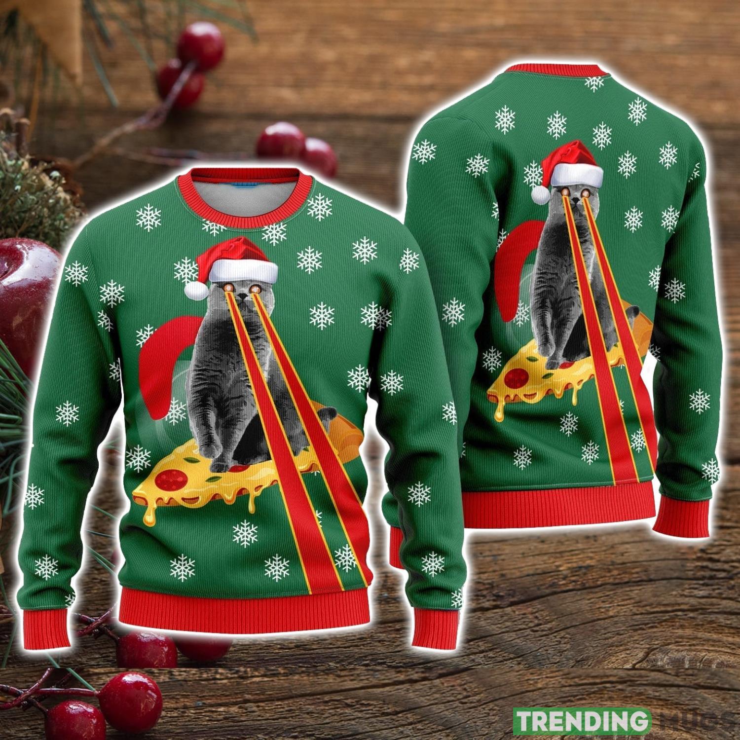 Pizza Cat With Laser Eyes Christmas Special Holiday Ugly Christmas Sweater Christmas Product Photo 1