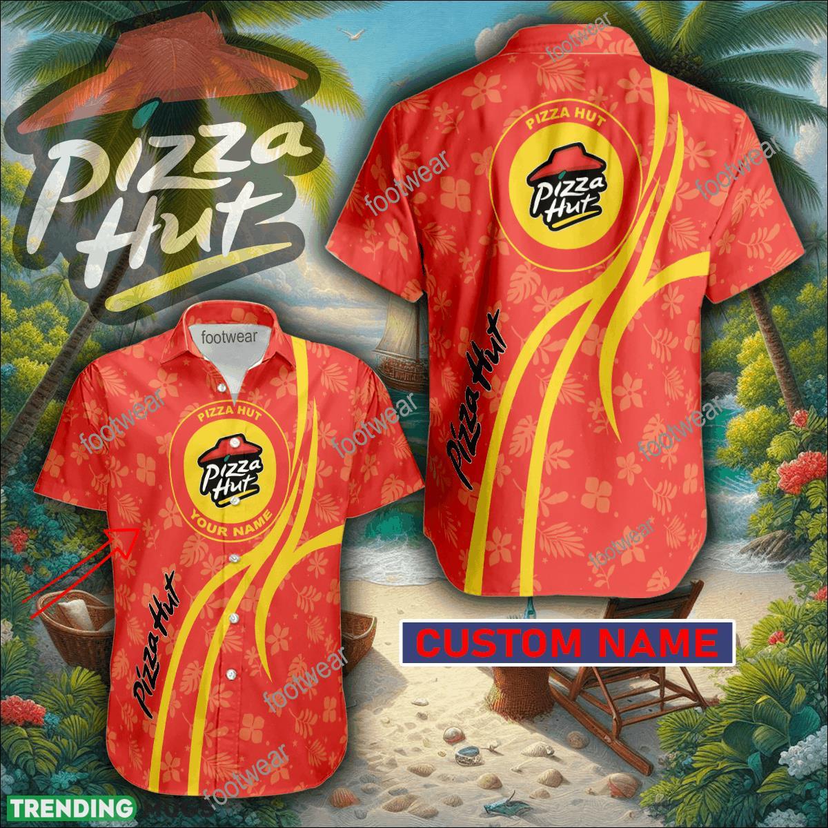 Pizza Hut 3D Hawaiian Shirt Logo Brand Custom Name Gift Beach Hawaiian Shirt