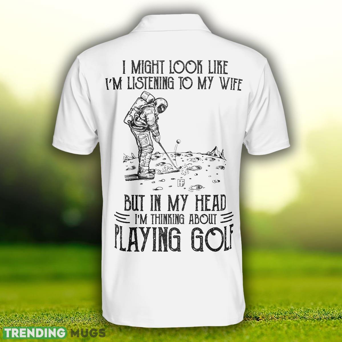 Playing Golf In My Head While Listening To My Wife , Black And White Astronaut Golfer Polo Shirt Polo Shirt
