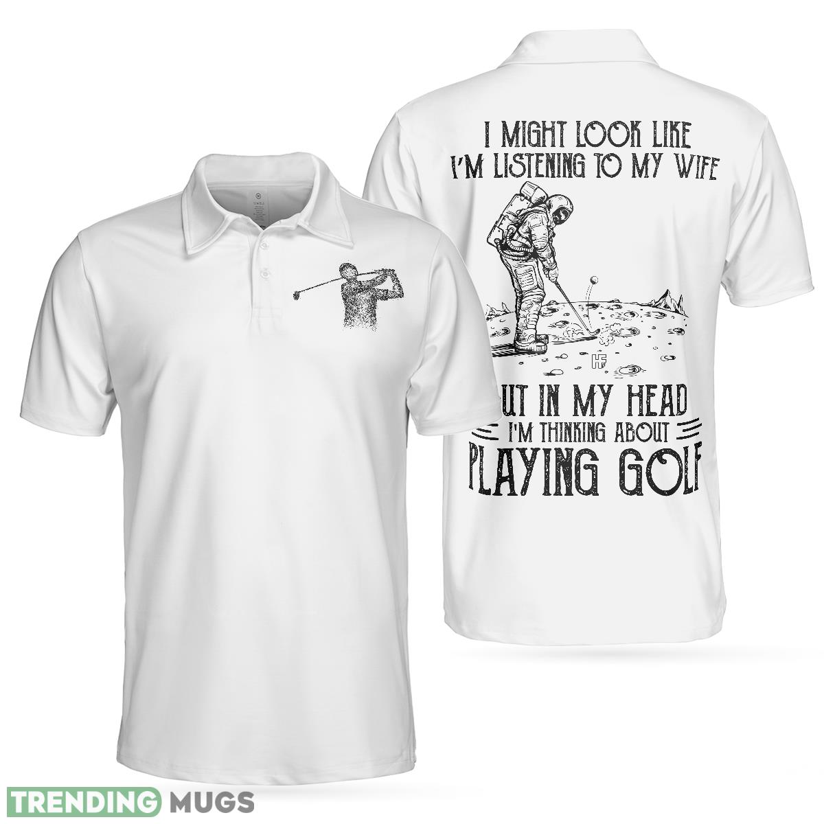 Be the first to review “Playing Golf In My Head While Listening To My Wife , Black And White Astronaut Golfer Polo Shirt”