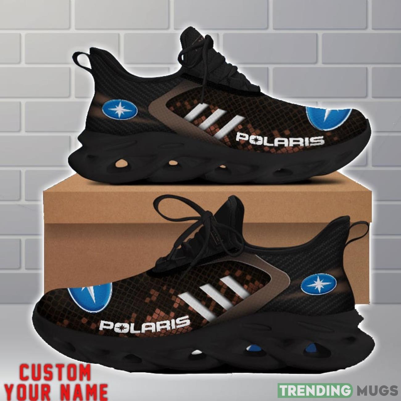 This Polaris Shoes Brown Square Pattern Custom Name Max Soul Sneakers For Men Women is a breathable, lightweight, and comfortable casual outdoor shoe that has a unique design. It is made of a mesh fabric which makes it sweat absorbent and breathable, while the rubber bottom ensures traction, comfort, and durability. It is available in two colors: black or white sole. There are two styles of shoelace holes so you can choose your preference.