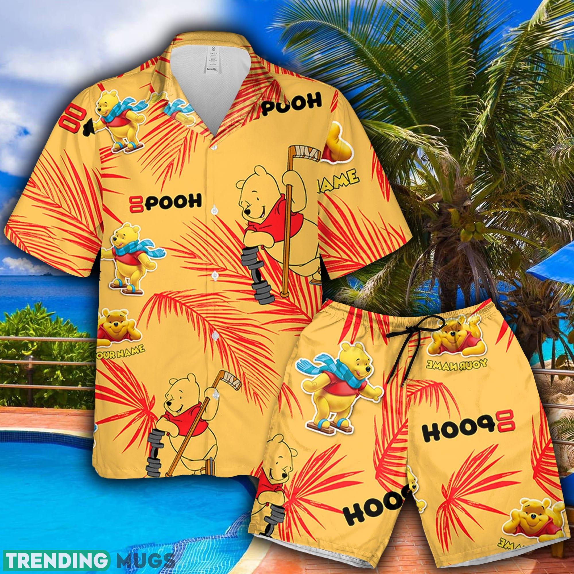Pooh Hockey Hawaiian Shirt And Short Palm Leaves Custom Name Summer Gift For Men And Women Details: