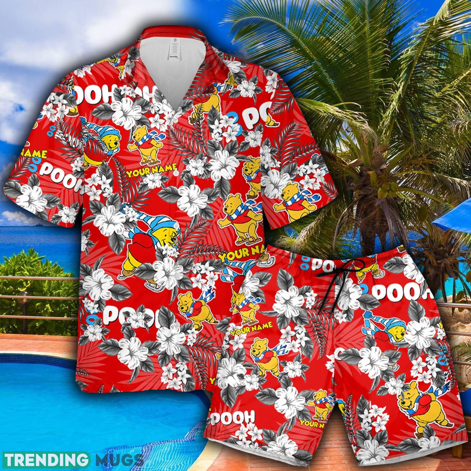 Crafted with the finest materials, this vibrant blue Hawaiian shirt features an eye-catching print of Pooh Skating, adding a dash of fun to your summer wardrobe. The shirt is complemented by a matching pair of shorts adorned with beautiful flowers, creating a striking ensemble that exudes tropical vibes.