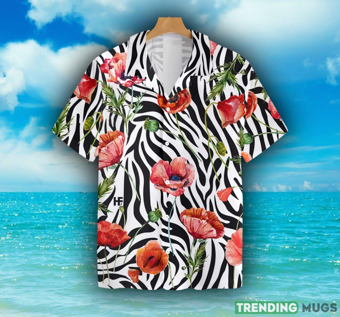 Poppy Zebra Watercolor Painting Art Hawaiian Shirt For Men And Women Details: