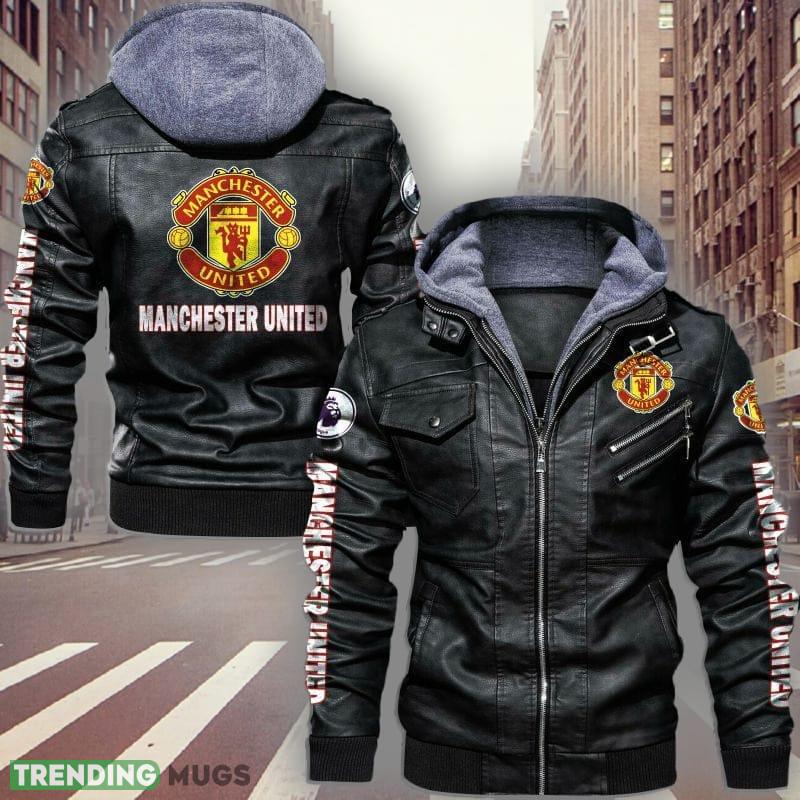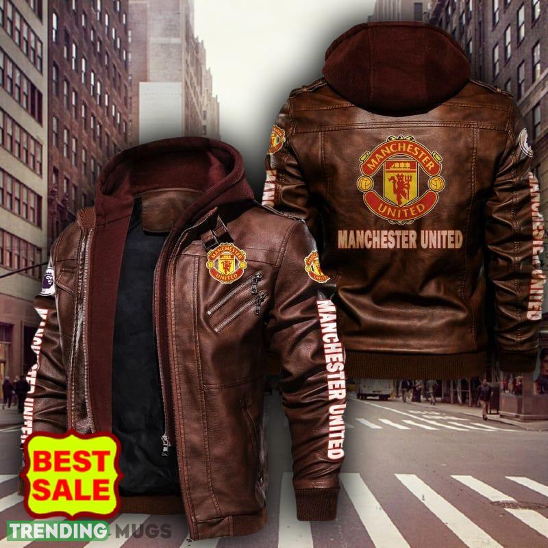 Premier League EPL Manchester United Logo Brown And Black Leather Jacket For Fans Material Information