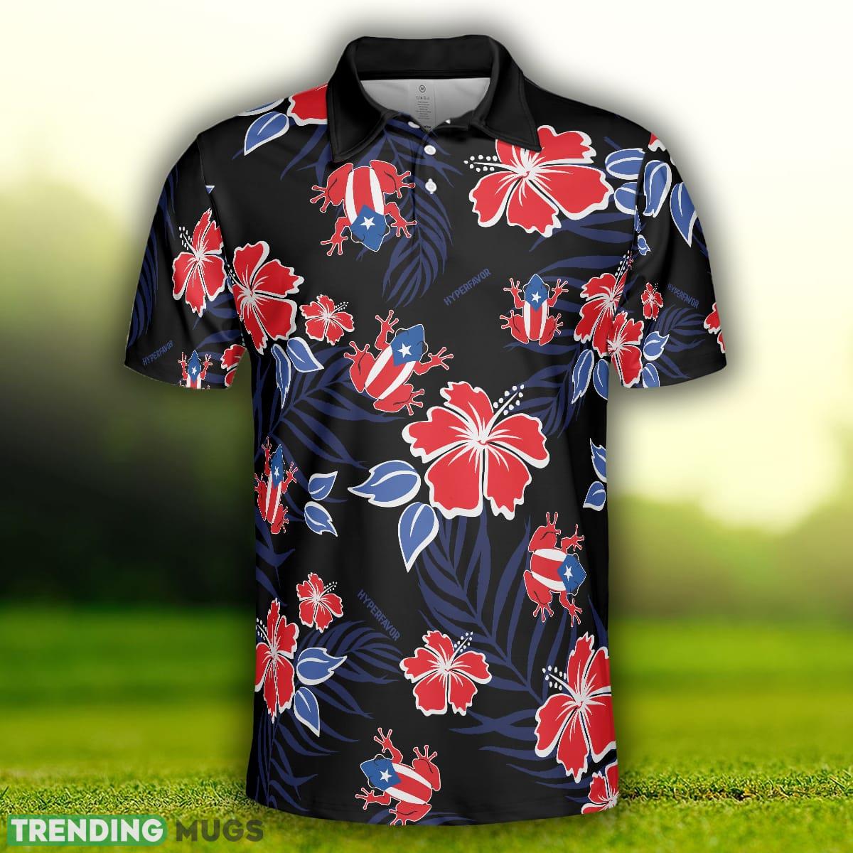 Puerto Rico Common Coquí Flag, Puerto Rican Toad And Floral Shirt Polo Shirt Information:
