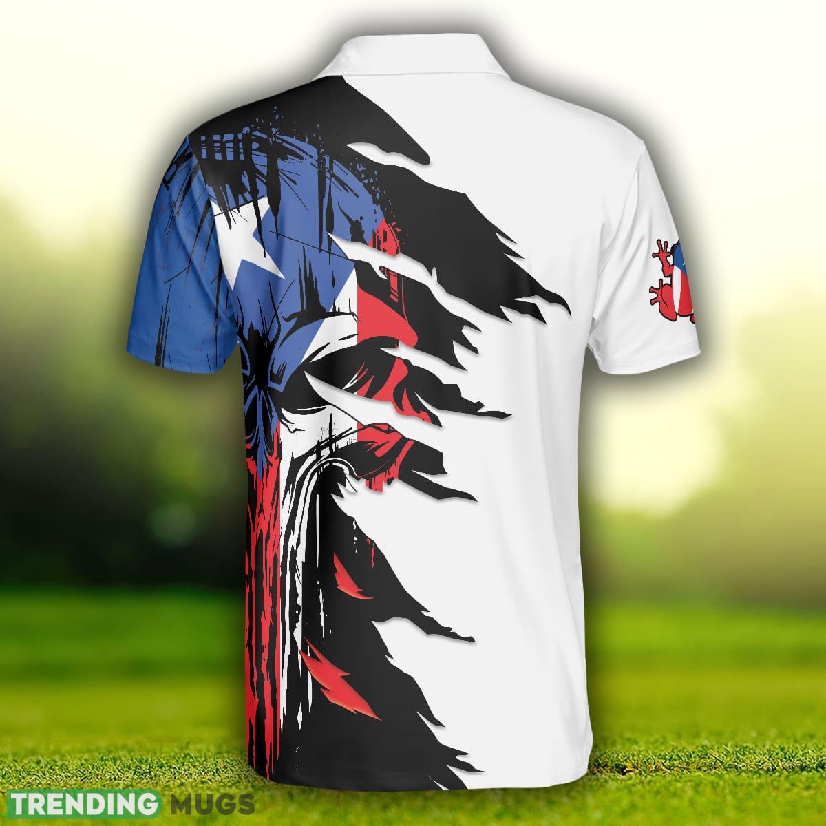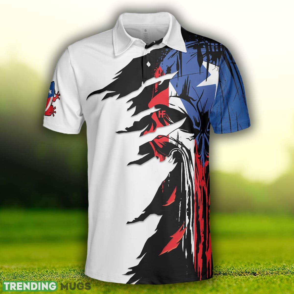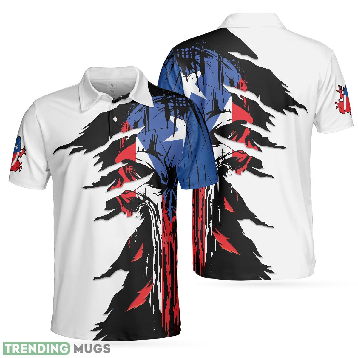 Get ready to show off your pride and passion for Puerto Rico with our Puerto Rico Skull, White Skull Puerto Rico Flag Shirt For American! This remarkable polo shirt combines American style with the vibrant Puerto Rico flag design, making it the absolute best choice for displaying your love for the beautiful island of Puerto Rico.