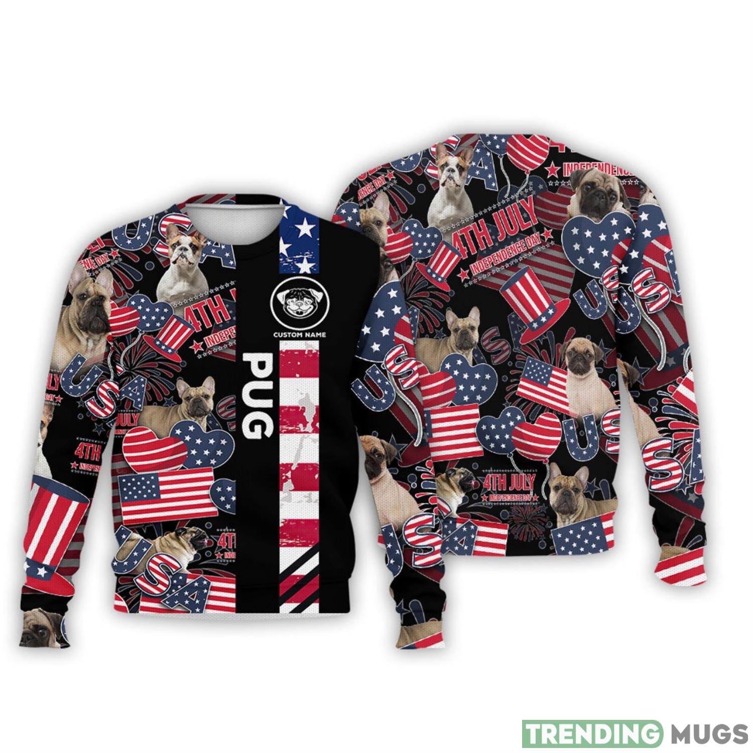 Pug Cute Pattern 4th Of July Holiday Flag American Gift 3D Sweater Product Photo 1