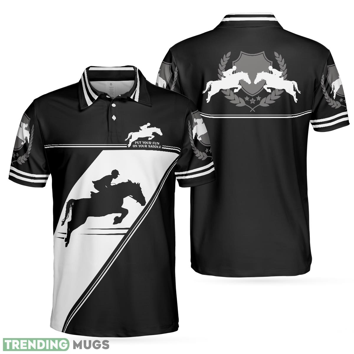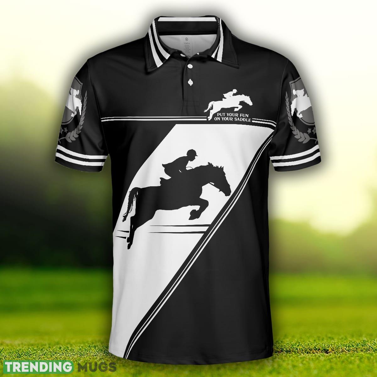 Put Your Fun On Your Saddle Horse Riding, Black And White Horse Riding Shirt Polo Shirt Information: