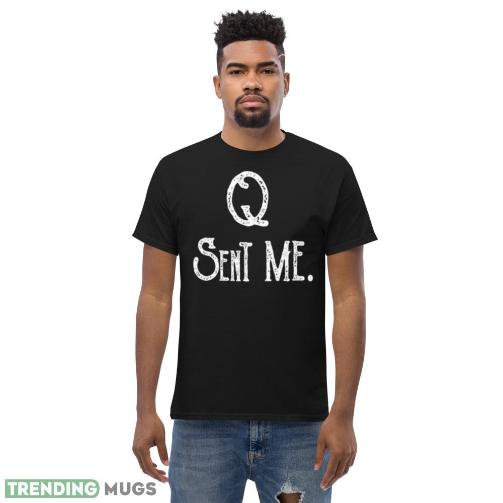 Looking for a stylish way to show off your support for President Donald Trump? Look no further than the Q Sent Me Donald Trump shirt! This eye-catching t-shirt features a bold, graphic design that proudly displays your allegiance to the President. Made from high-quality materials, this shirt is both comfortable and durable, making it the perfect choice for wearing to rallies, events, or just around town. So why wait? Order your Q Sent Me Donald Trump shirt today and show the world where you stand!