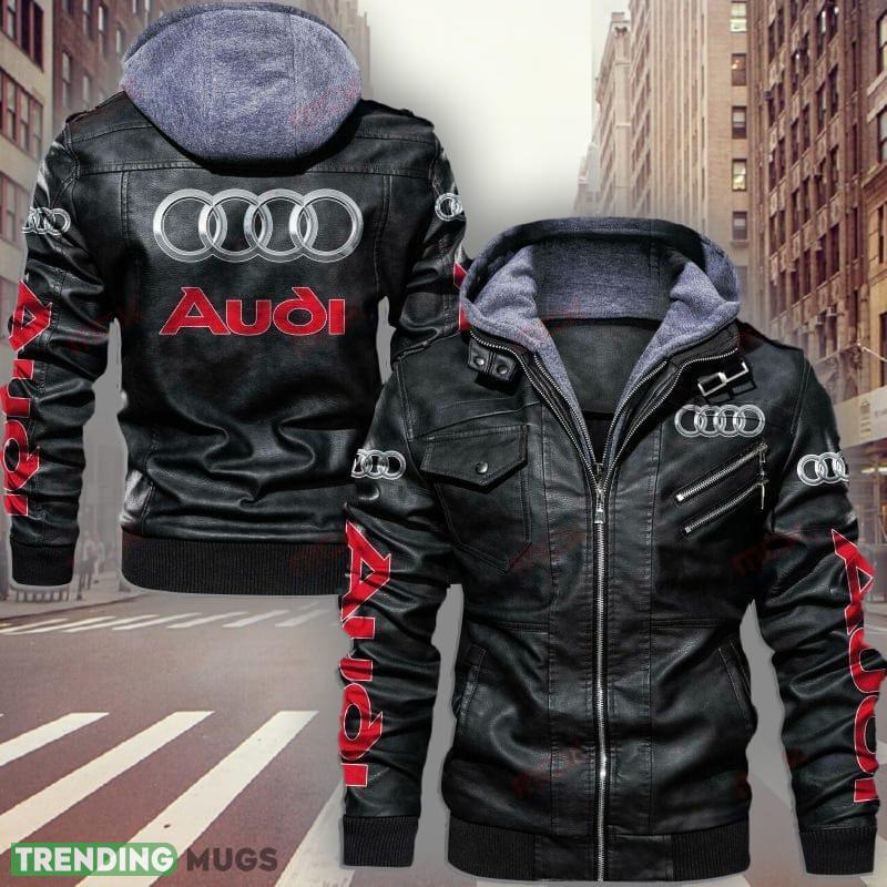 Racing Car Audi F1 Teams Style 7 Big Logo Black Brown Leather Jacket For Fans Material Information