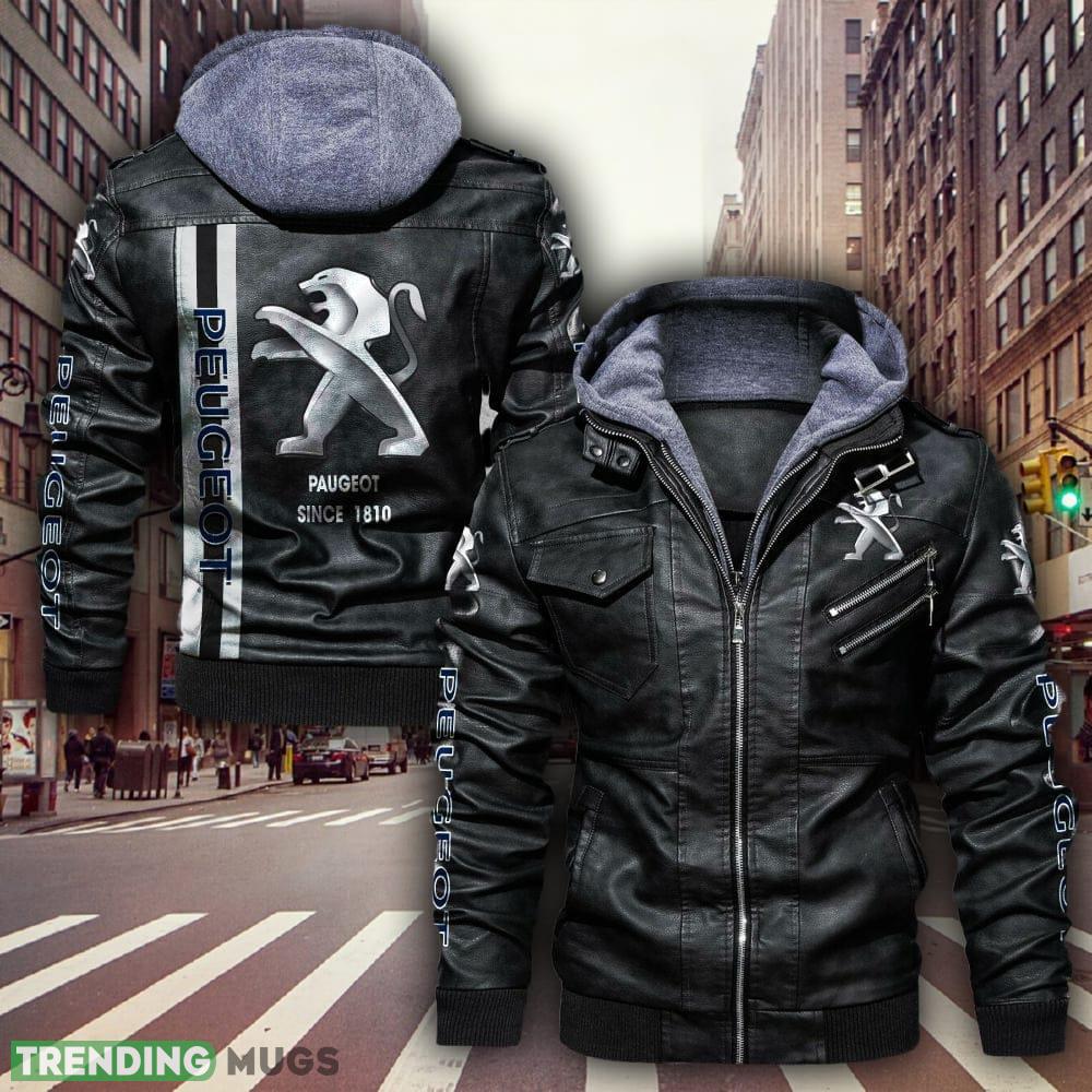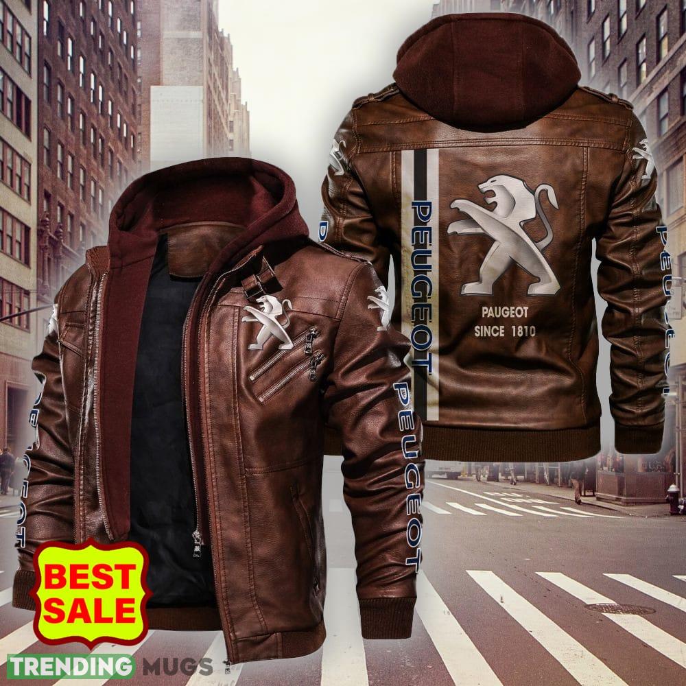 Racing Car Peugeot Automobiles Style 4 Big Logo Black Brown Leather Jacket For Fans – Racing Car Peugeot Automobiles Leather Jacket_1