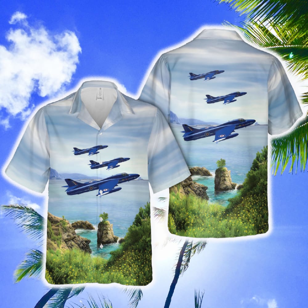 Experience the thrill of the skies and the Aloha spirit with our RAF Hawker Hunter F.6 XG189 of No. 92 Squadron Blue Diamonds aerobatic team Hawaiian Shirt. Perfect for both men and women, this shirt is more than just a piece of clothing; it’s a symbol of adventure, passion, and timeless