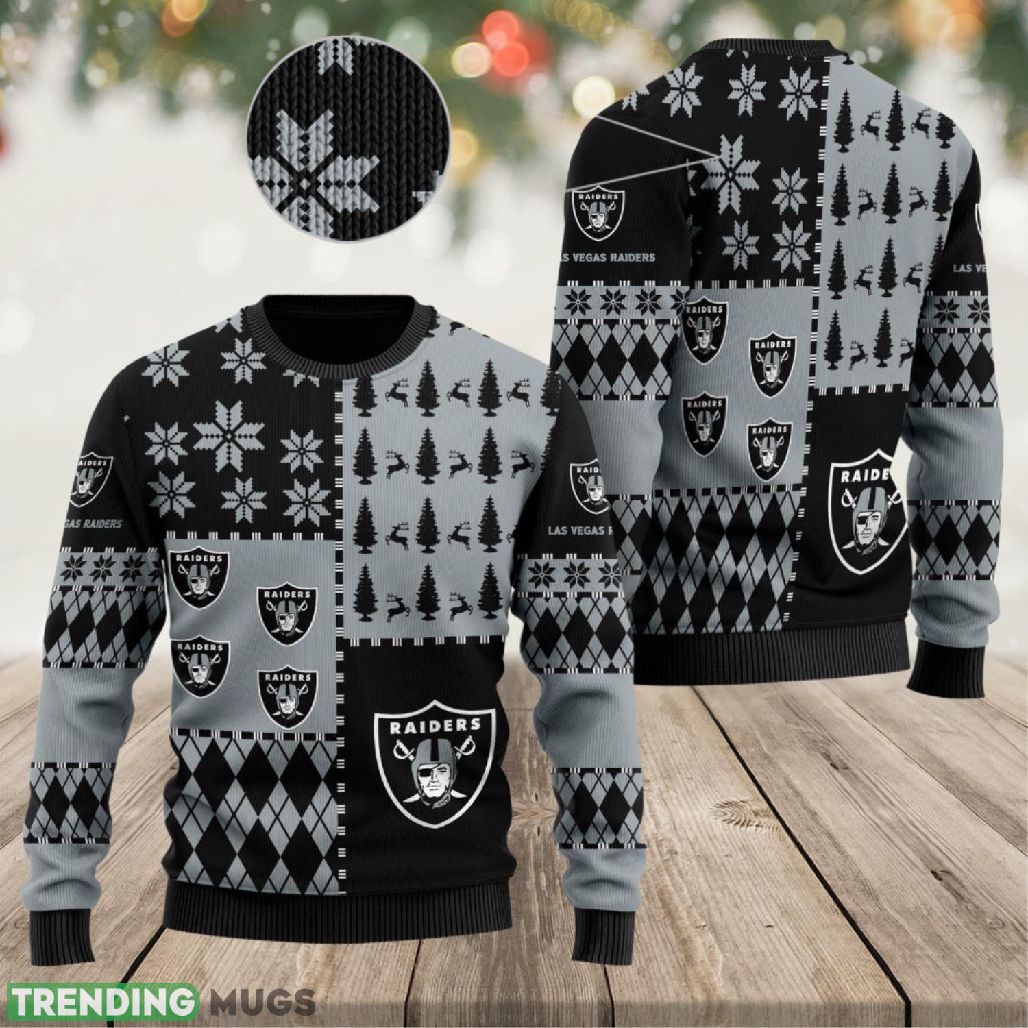 Not only does this sweater showcase your unwavering support for the Las Vegas Raiders, but it also provides unparalleled comfort. Made from high-quality materials, it offers a soft and cozy feel that will keep you warm during those chilly winter nights. The perfect blend of style and comfort, it is a must-have addition to your festive wardrobe.