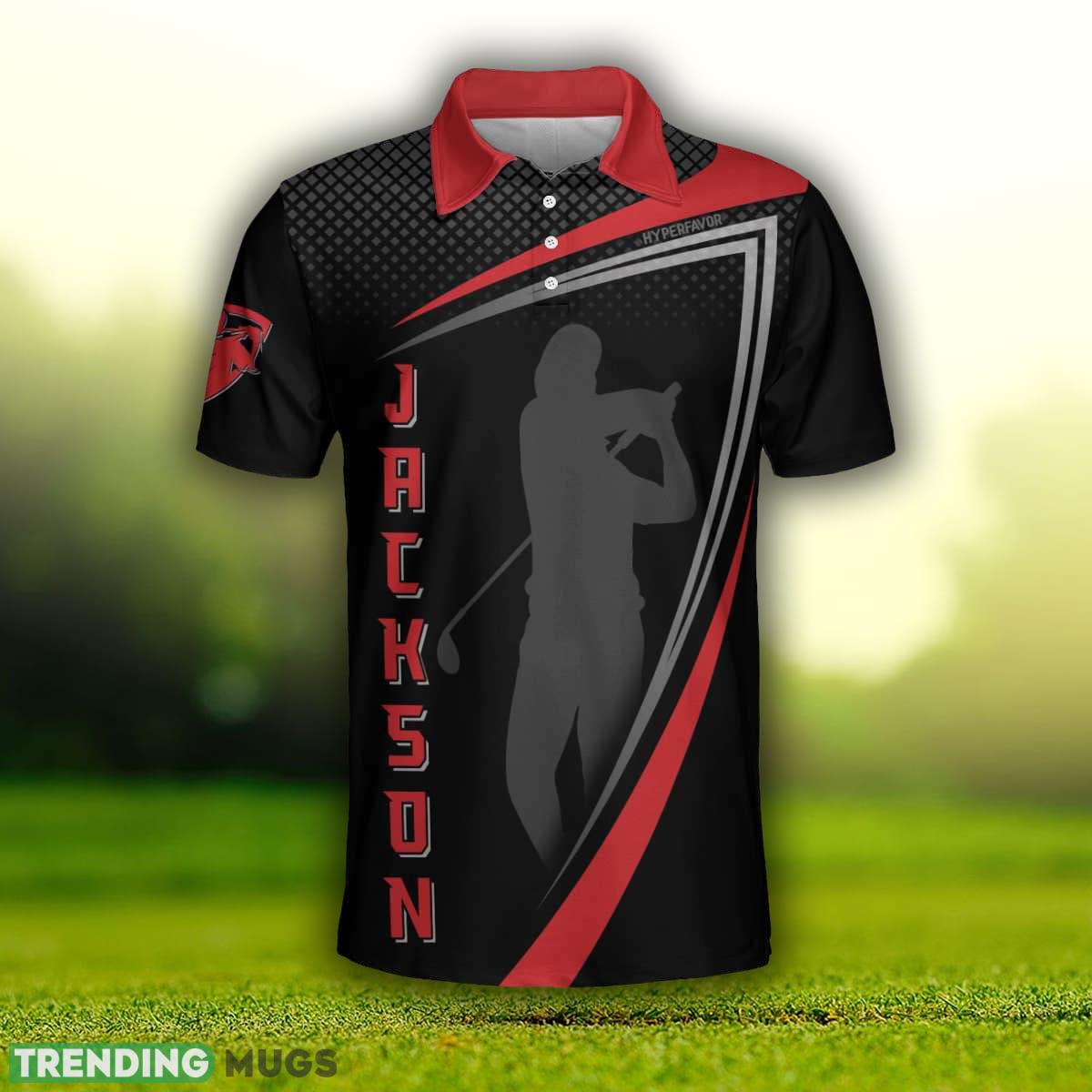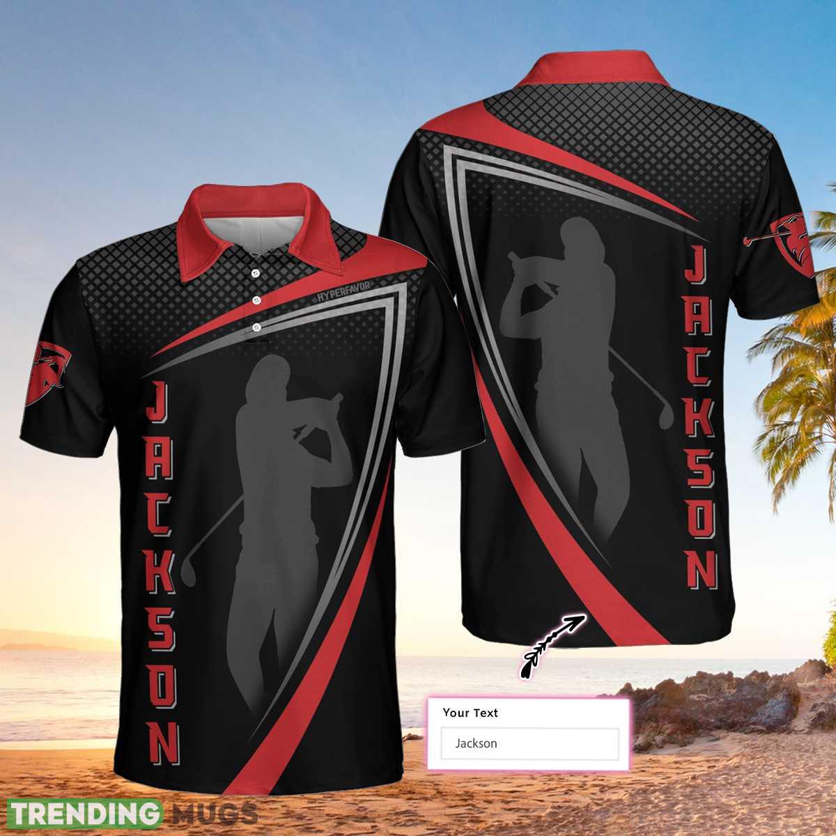 Red And Black Sport Golf, Golfer Silhouette, Best Golf Shirt Custom Name Polo Shirt Information: