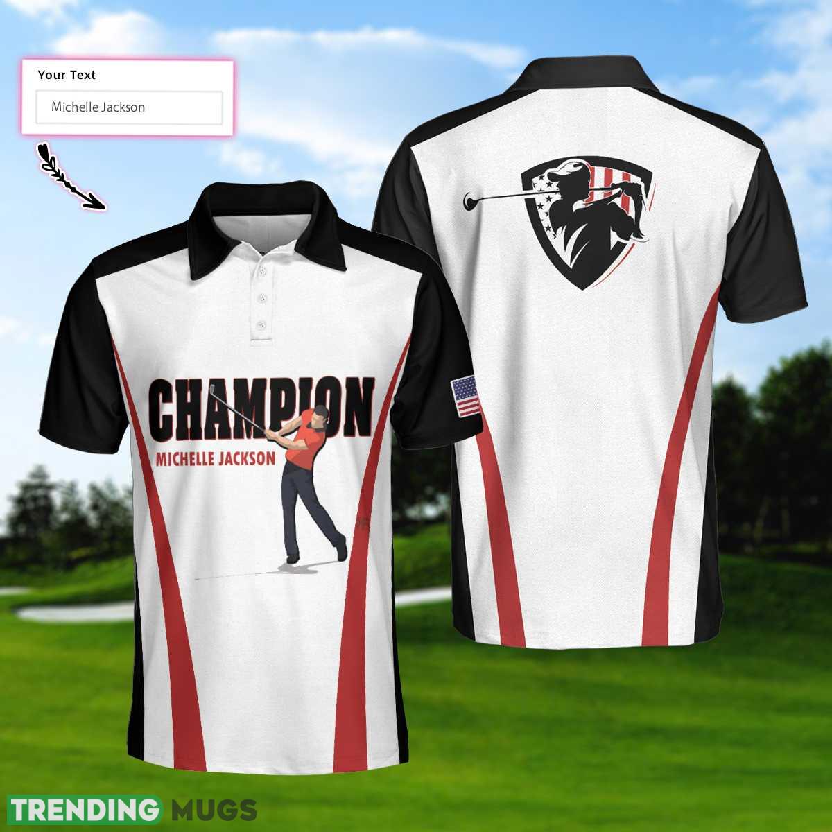 Red And White American Flag, Champion Golfer, Best Golf Shirt Custom Name Polo Shirt Information: