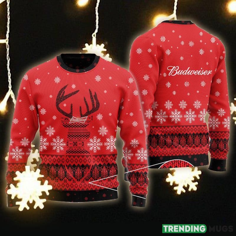 Red Budweiser Reindeer Snowy Ugly Christmas Sweater Gift For Men Women Informations: